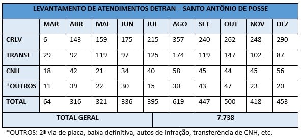 Erramos ao divulgar a soma dos atendimentos realizados pelo Detran do município. O valor correto é o de 3.869 e não 7.738, como anteriormente divulgado.