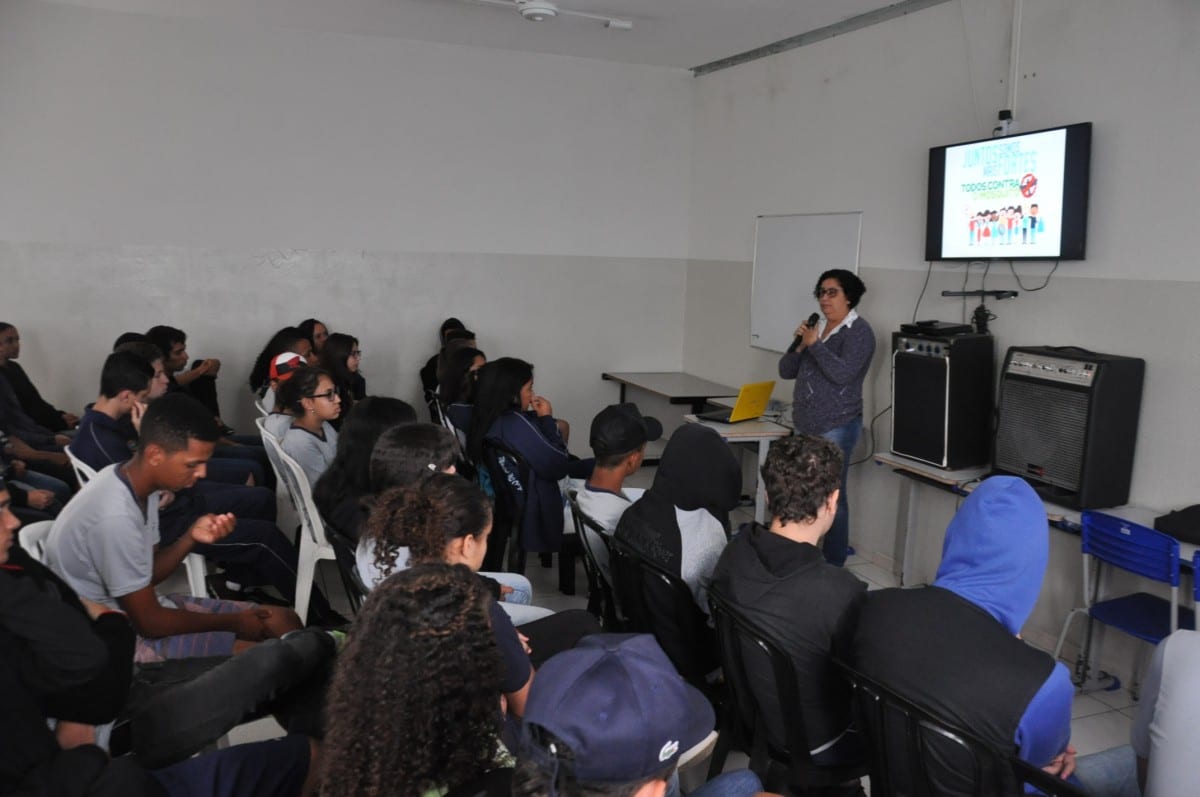 A Secretaria de Saúde, através da Vigilância Epidemiológica, realizou na manhã de quinta-feira, dia 25 de outubro, uma palestra para cerca de 150 alunos dos 8º e 9º anos da EMEF Prefeito Augusto Coelho sobre o Aedes Aegypti e as formas de comb...