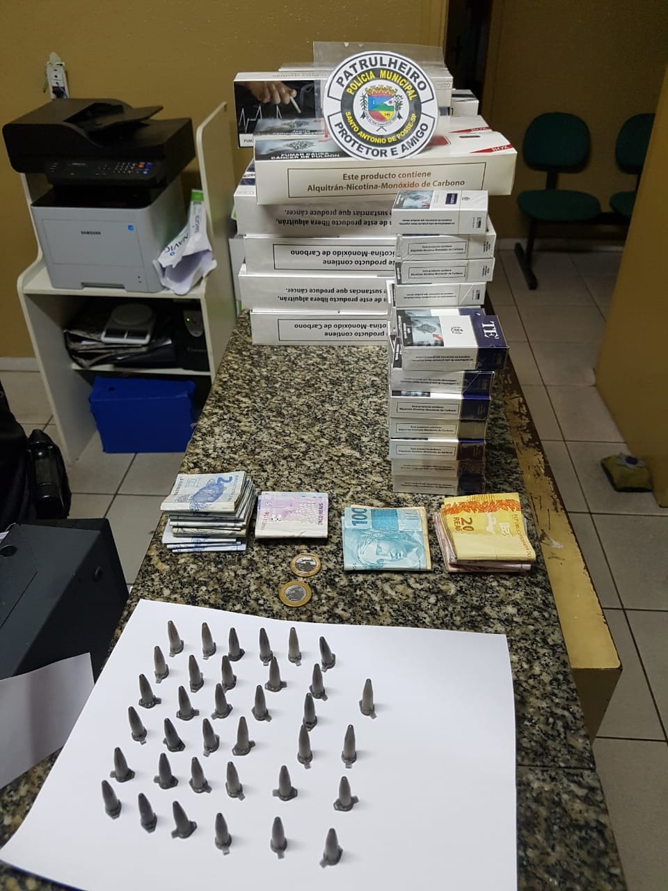 Ao averiguar uma denúncia anônima de tráfico de drogas em um comércio na Vila Esperança no domingo, dia 14 de outubro, agentes da Polícia Municipal fizeram a apreensão de 35 pinos de cocaína, R$957,00 em dinheiro e 390 maços de cigarros prov...