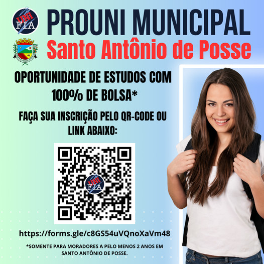 A Prefeitura de Santo Antônio de Posse em parceria com o Centro Universitário Amparense – UNIFIA, está com inscrições abertas ao programa "Prouni Municipal". São 130 bolsas gratuitas em cursos superiores de - Recursos Humanos, Processos Geren...