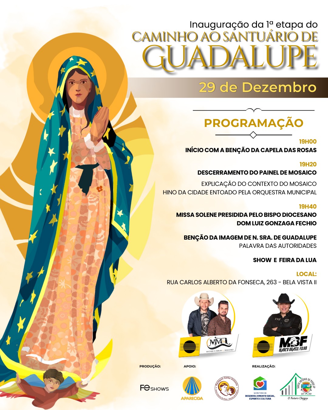 A Prefeitura Municipal e a Paróquia Santo Antônio definiram a data de inauguração da primeira etapa das obras do mais novo espaço religioso da cidade, o "Caminho ao Santuário de Guadalupe", localizado na Rua Carlos Alberto da Fonseca – Bela V...