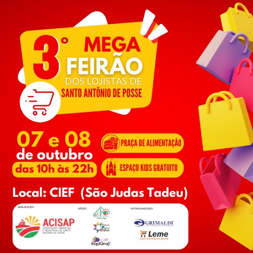 Com o objetivo de impulsionar o comércio local e fomentar desenvolvimento econômico, a Associação Comercial de Santo Antônio de Posse (Acisap), em parceria com a Prefeitura Municipal, promove neste fim de semana, dias 7 e 8 de outubro, o 3º Meg...