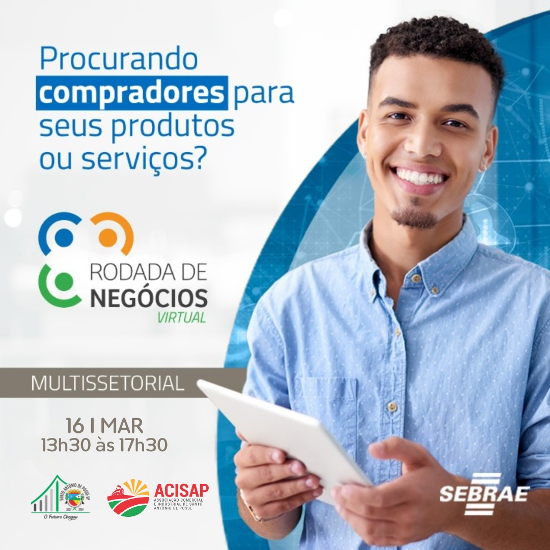 A Prefeitura Municipal e o SEBRAE-SP, convidam você a participar da Rodada de Negócios Virtual, que acontece na quinta-feira, 16 de março, das 13h30 às 17h30. A iniciativa tem por objetivo promover encontros empresariais virtuais que fomentem a r...