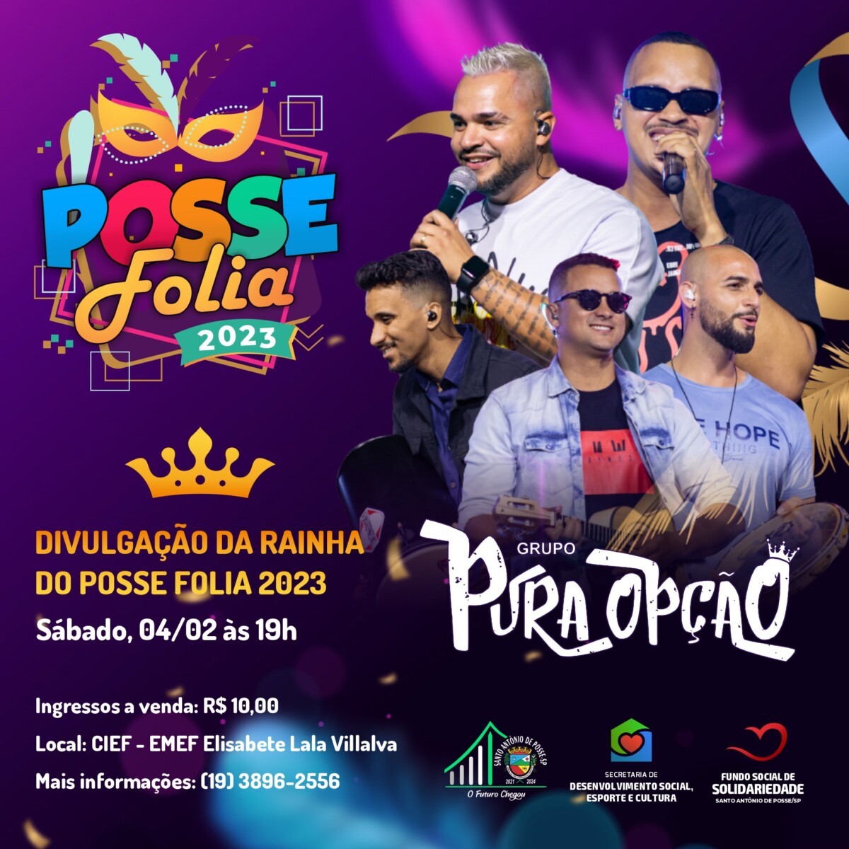 Abrindo o Posse Folia 2023, o grupo Pura Opção se apresenta neste sábado, 4, no Baile de Carnaval do Fundo Social de Solidariedade, trazendo o melhor do samba e pagode para Santo Antônio de Posse. Além do show, o público presente conhecerá a R...