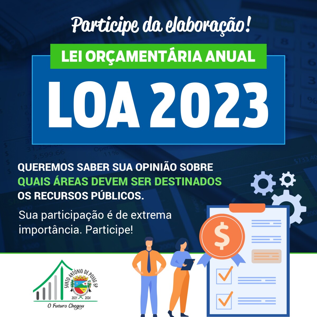 A Prefeitura Municipal de Santo Antônio de Posse, deu início ao processo de elaboração da Lei Orçamentária Anual (LOA) 2023, e quer saber sua opinião sobre as prioridades na aplicação dos recursos públicos. O munícipe pode enviar suas suge...