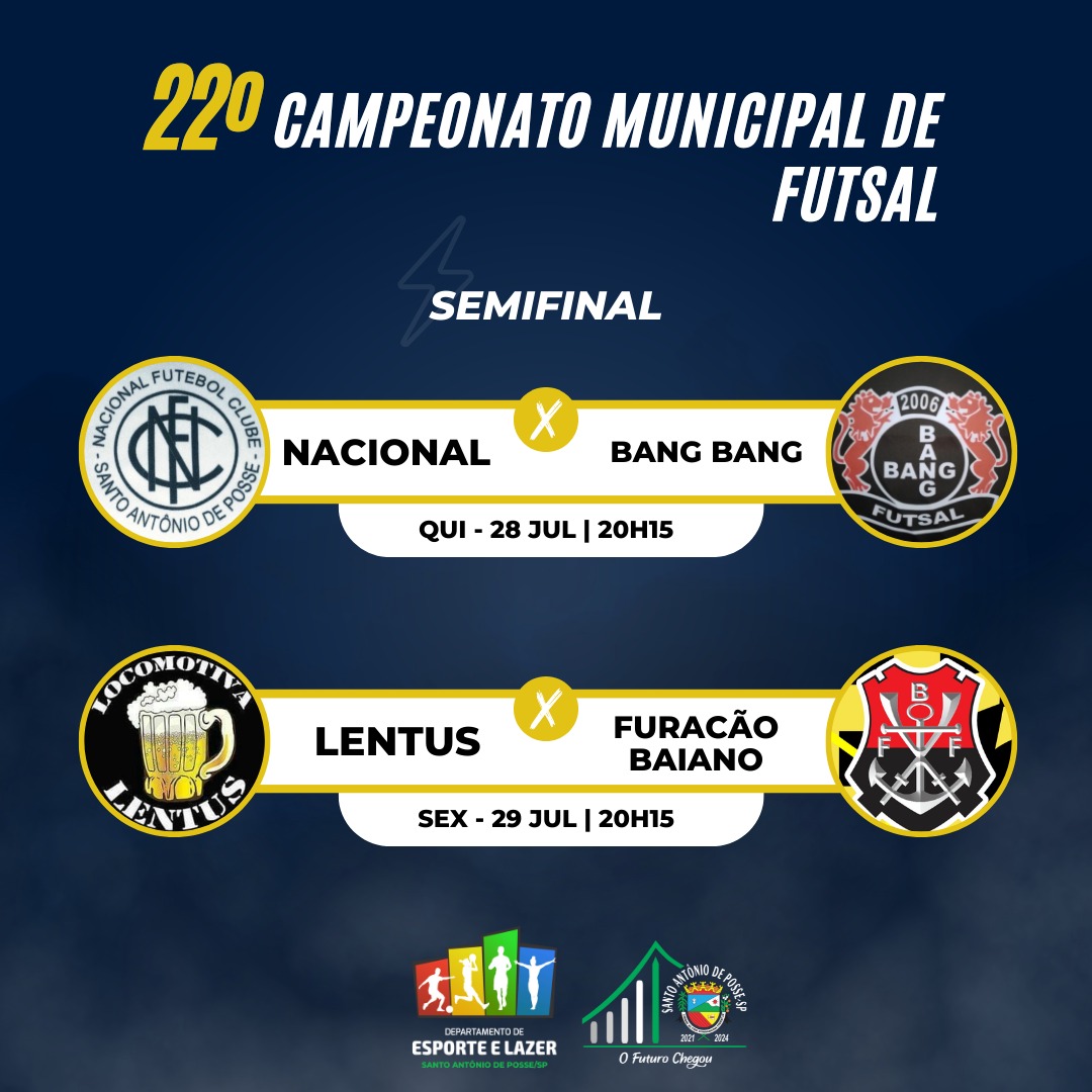 Às semifinais do 22º Campeonato Municipal de Futsal Masculino e do Regional de Futsal Feminino foram definidas. Abrindo a rodada, na quinta-feira, 28, às 19h15, a equipe da A.D. Aliança enfrenta o Smerle Amparo em partida válida pelo Regional Fe...
