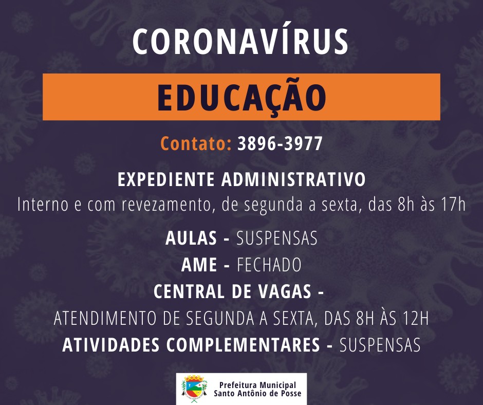 Considerando o estabelecimento de estado de pandemia pela Organização Mundial de Saúde pelo coronavírus (Covid-19) e em conformidade com as orientações do Governo do Estado de São Paulo, a Prefeitura Municipal de Santo Antônio de Posse inform...