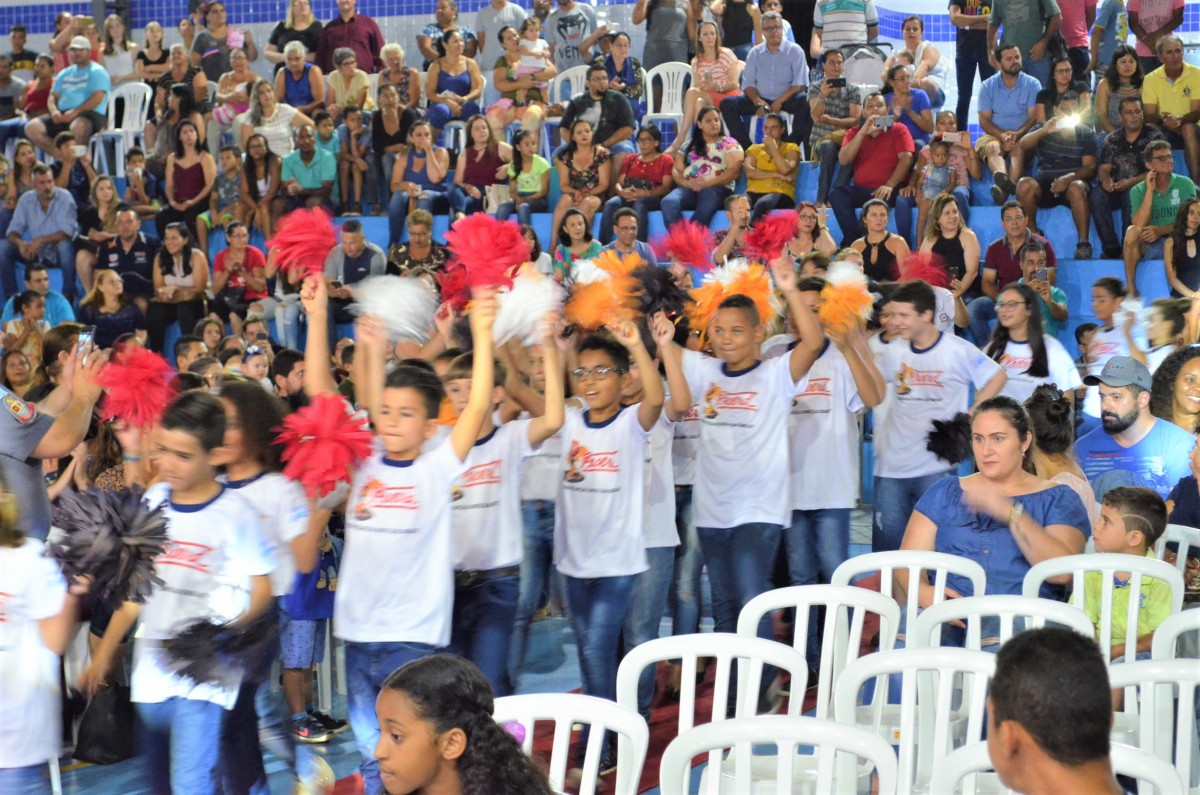 A noite da terça-feira, dia 26 de novembro, foi animada para os cerca de 350 alunos dos 5º anos da rede municipal e particular de ensino de Santo Antônio de Posse. Após três meses de aulas e atividades do Programa Educacional de Resistência às Drogas (Proerd), os estudantes participaram da cerimônia de formatura, realizada na Quadra Poliesportiva do CIEF.