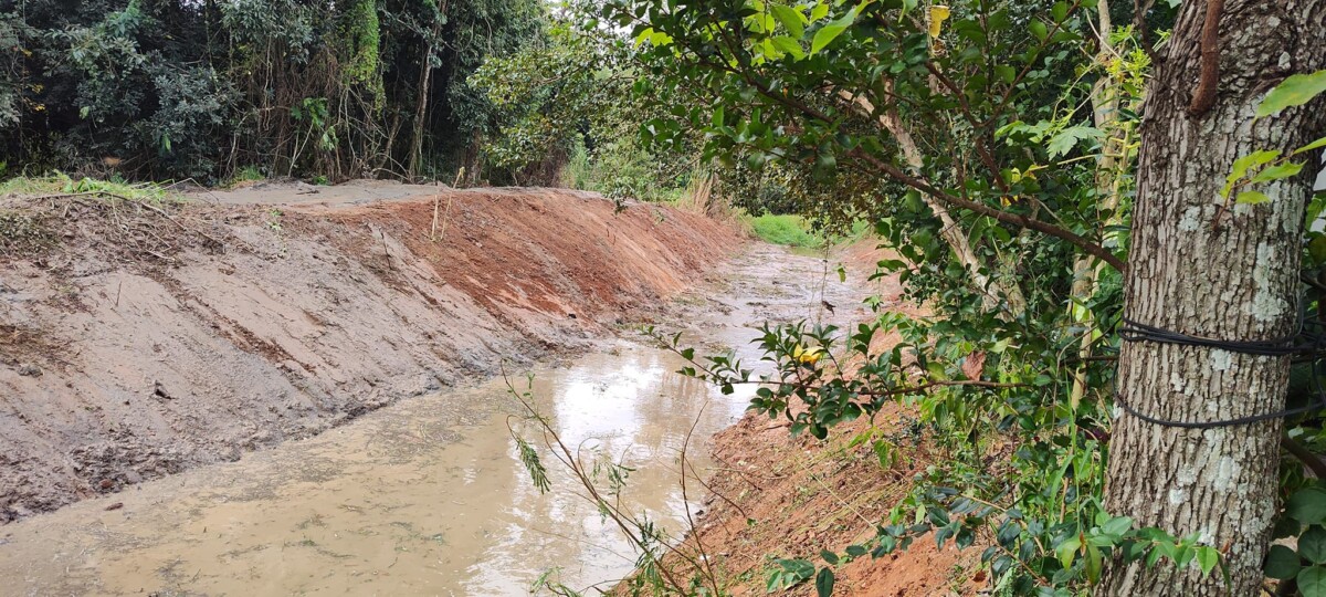 Equipe da Secretaria de Serviços Públicos e Meio Ambiente realiza limpeza do córrego do Monte Santo