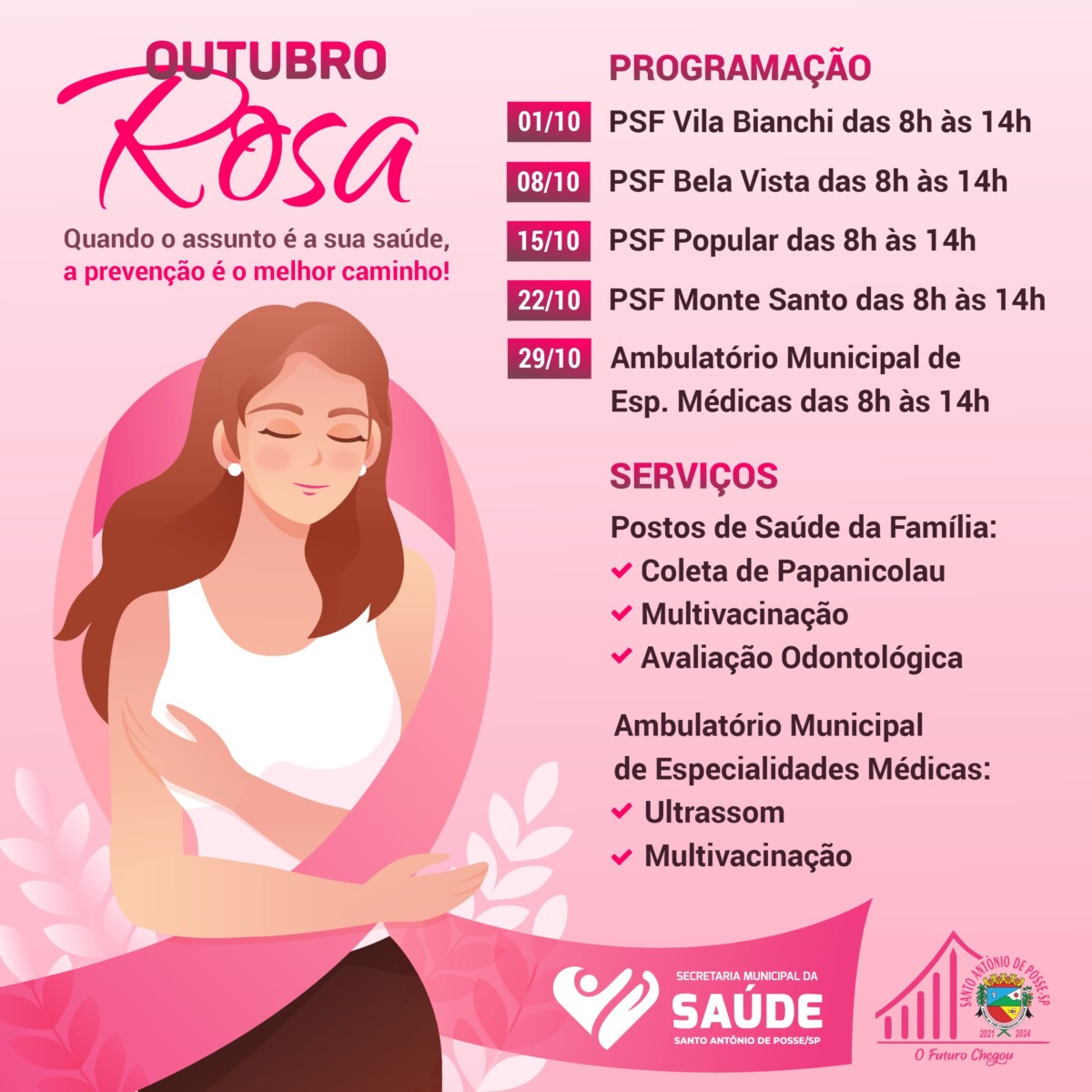 A Prefeitura Municipal, por meio da Secretaria da Saúde, realiza ao longo do mês de outubro, uma série de ações voltadas a saúde da mulher, em decorrência do “Outubro Rosa”. A iniciativa busca anualmente compartilhar informações e consci...