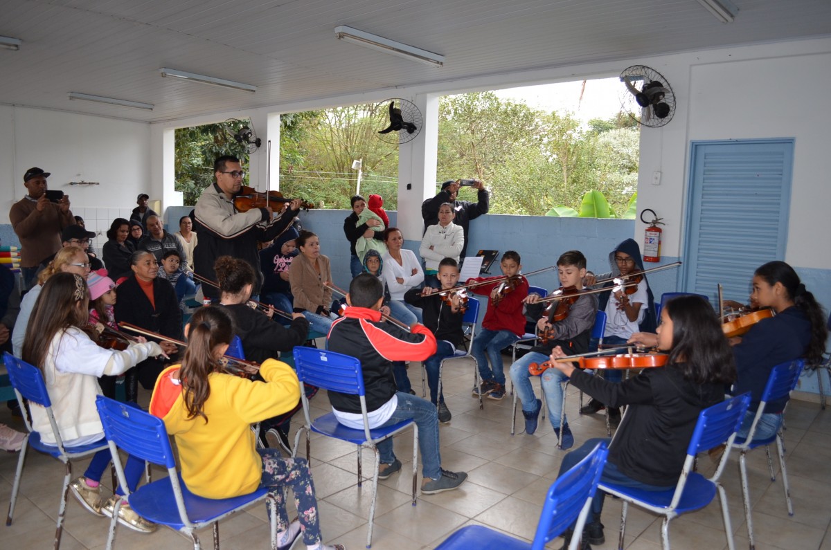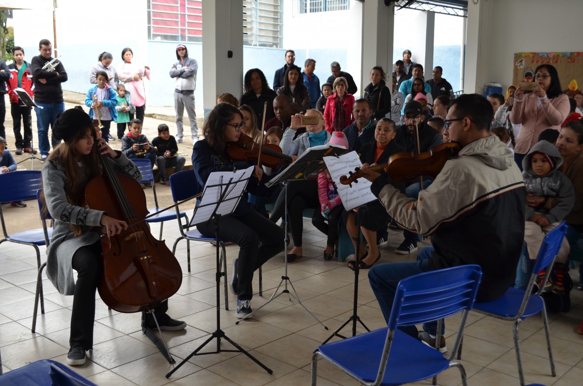 O maestro, professor de cordas e fundador do projeto, Jonathan Santos, juntamente do professor de sopro, Tiago Graça, organizaram diversas apresentações musicais para os presentes. Mesmo com o frio, o pátio estava lotado e os presentes puderam assistir a evolução dos alunos.
