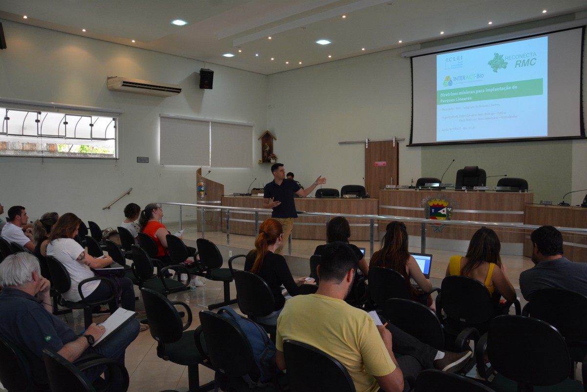 Para abertura da reunião, o biólogo de Itatiba, Pedro Carvalho Neto apresentou sua pesquisa “Diretrizes mínimas para implantação de Parques Lineares” para os presentes. O conteúdo está sendo produzido em parceria com o médico veterinário da cidade de Hortolândia, Paulo Mancuso, para o subgrupo de Parques Lineares.
