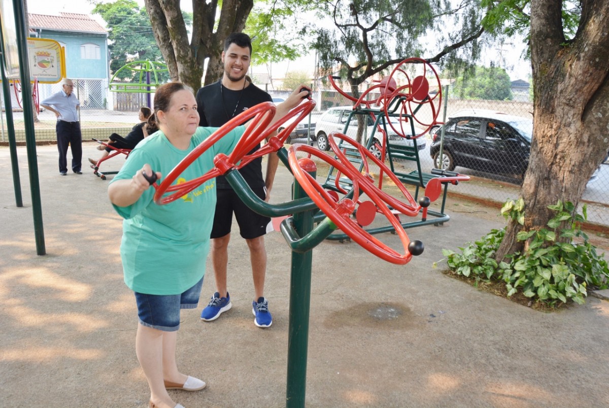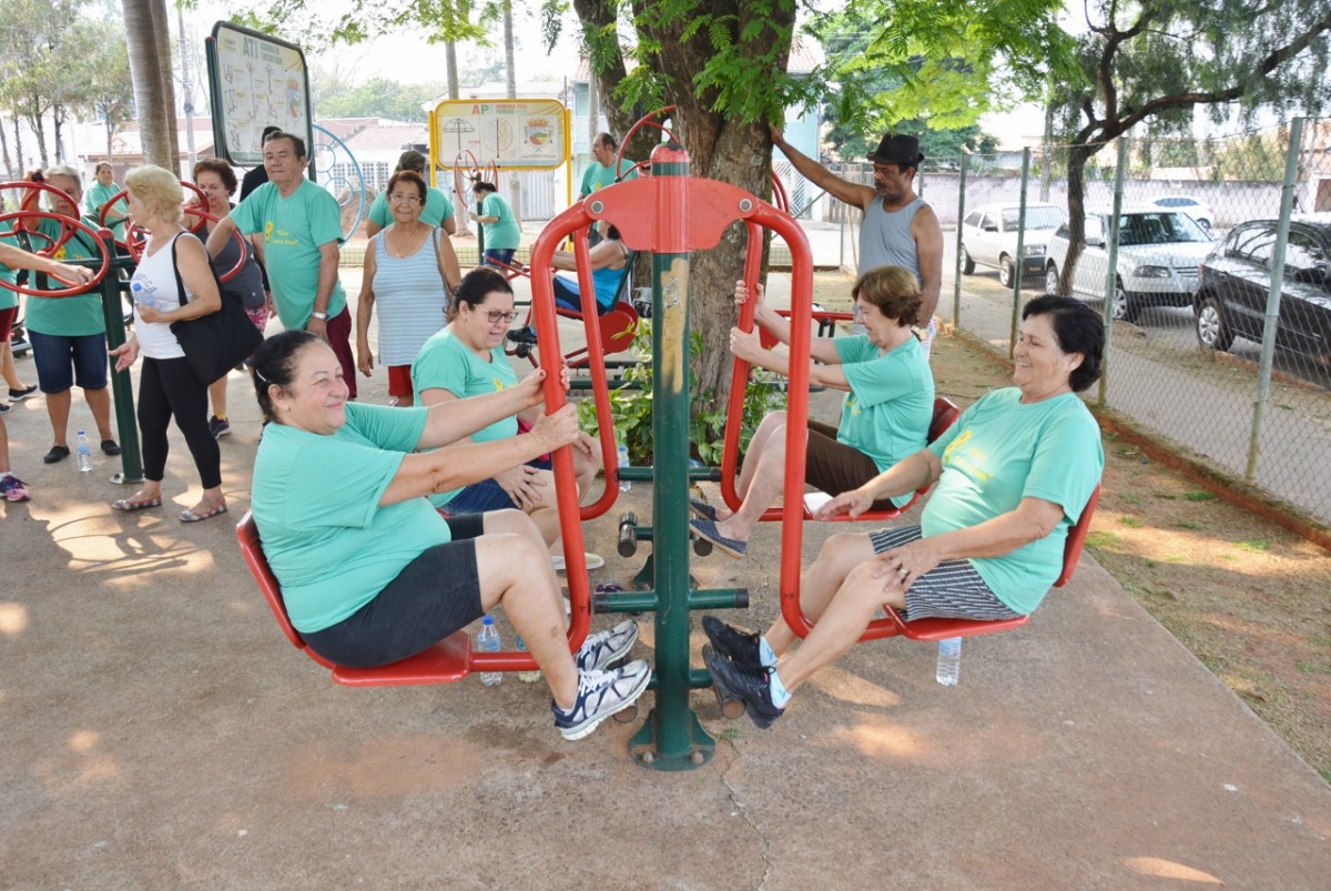 Após a palestra, a professora de Educação Física, Michele Almeida, juntamente do estagiário de Departamento de Esportes, Renan Silva de Matos, deram início a Ginástica Ritmada, seguida do Vôlei Adaptado e Musculação. Nesta última atividade, os idosos aprenderam o uso correto dos aparelhos disponíveis na Academia ao Ar Livre. Para finalizar a programação do dia, todos participaram de um alongamento.