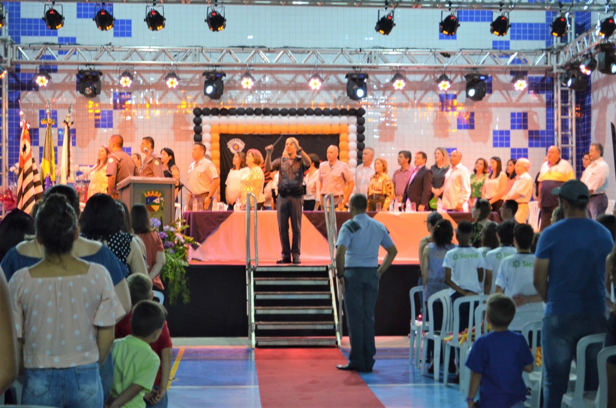 A noite da terça-feira, dia 26 de novembro, foi animada para os cerca de 350 alunos dos 5º anos da rede municipal e particular de ensino de Santo Antônio de Posse. Após três meses de aulas e atividades do Programa Educacional de Resistência às Drogas (Proerd), os estudantes participaram da cerimônia de formatura, realizada na Quadra Poliesportiva do CIEF.