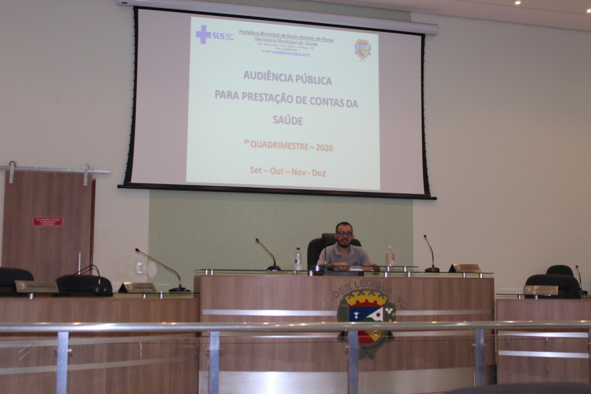A Secretaria Municipal da Saúde de Santo Antônio de Posse realizou nesta terça-feira, dia 9, no plenário da Câmara Municipal, Audiência Pública para prestação de contas referente ao 3º Quadrimestre de 2020, ou seja, os meses de setembro, outubro, novembro e dezembro. Foram apresentados os números em relação a consultas, exames, cirurgias, internações e demais atendimentos prestados a população possense.