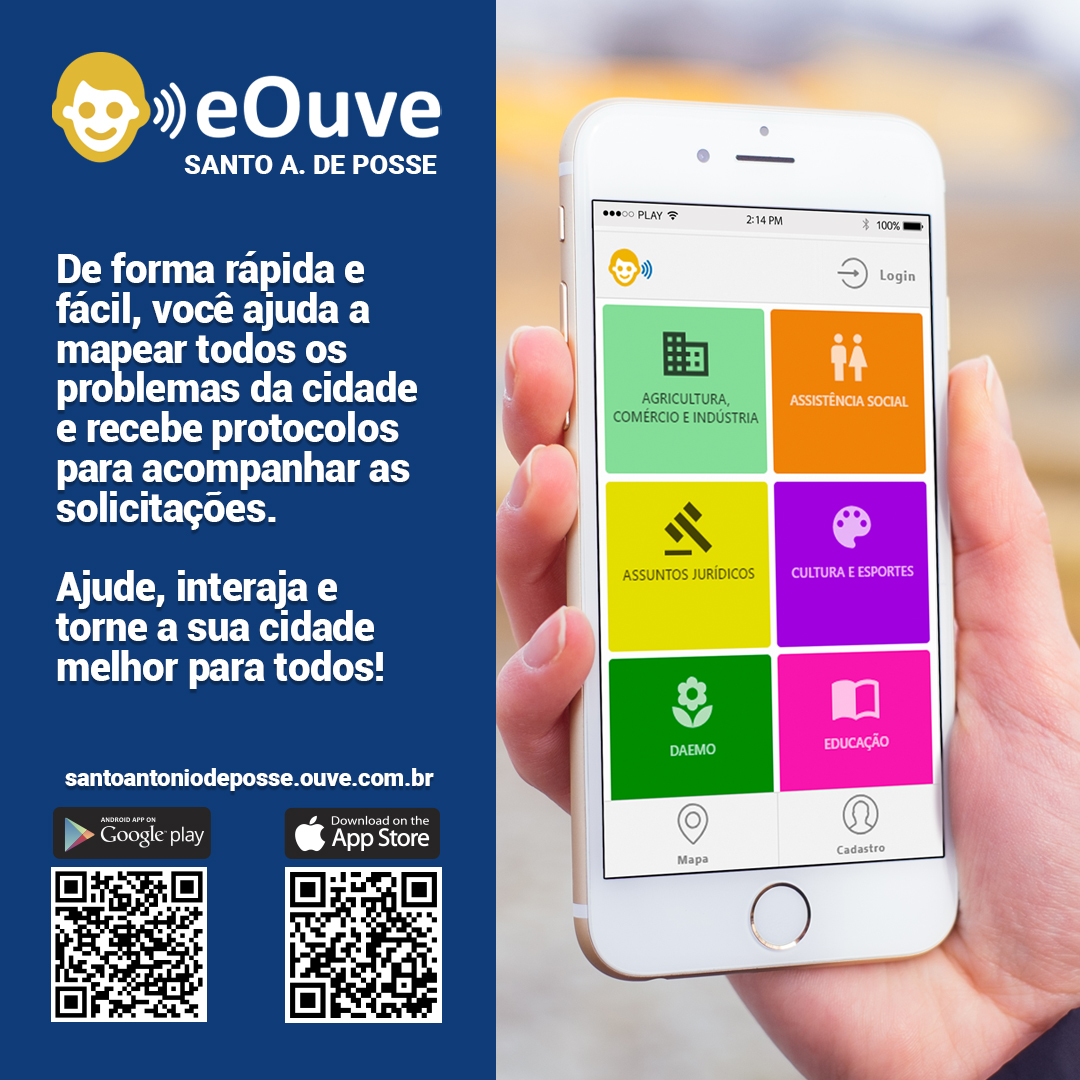 Com o eOuve, os munícipes poderão acessar serviços de várias secretarias e manter contato on-line, usando celular, tablet ou computador. Após baixar o aplicativo, será solicitada a indicação do estado e da cidade e o usuário deve clicar em São Paulo e depois em Santo Antônio de Posse. A partir daí, um cadastro simples identifica o cidadão. Todas as secretarias de Santo Antônio de Posse estarão relacionadas no aplicativo e os serviços disponíveis também.