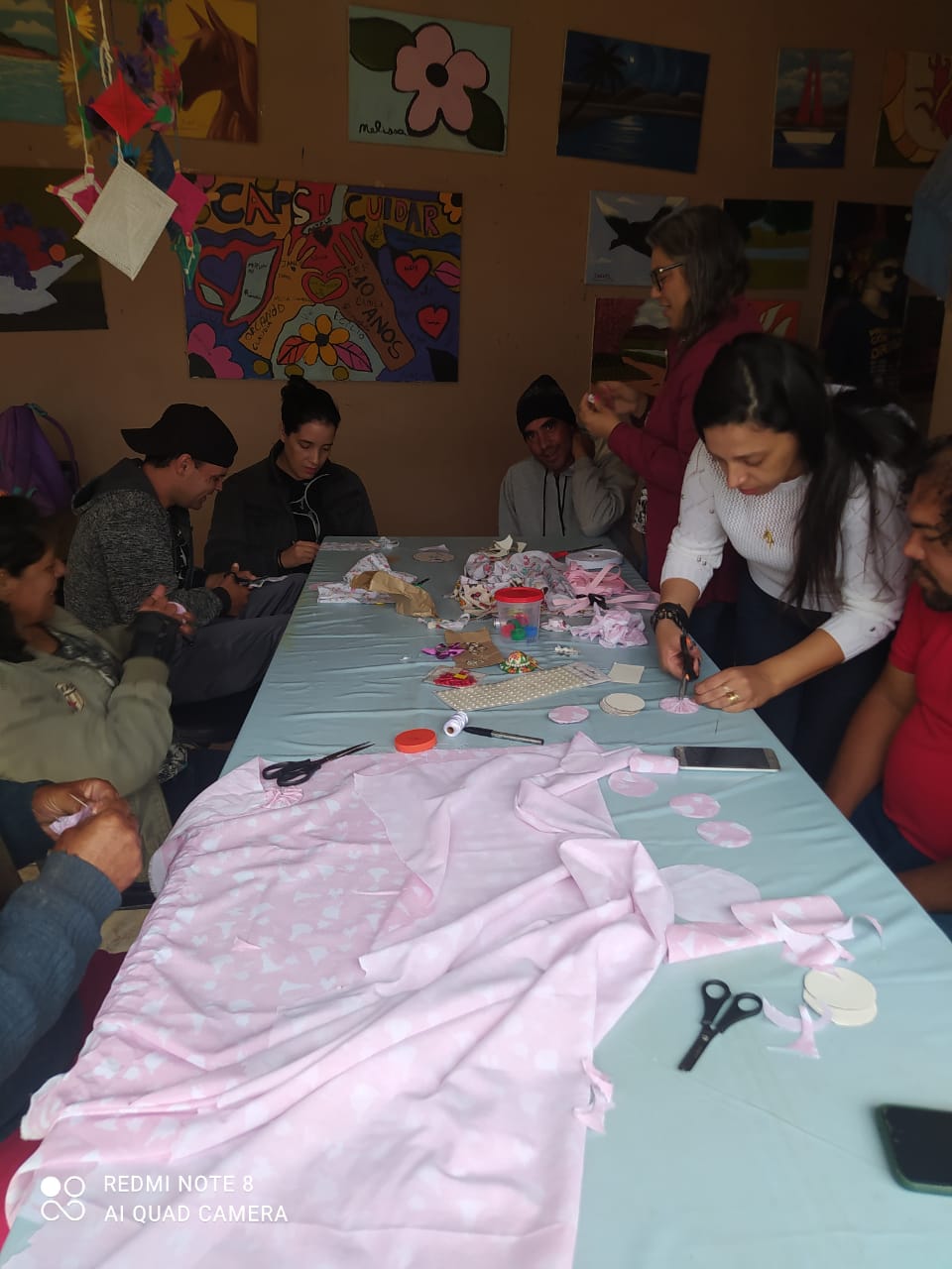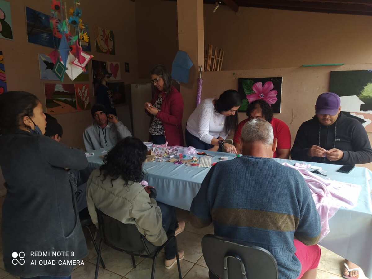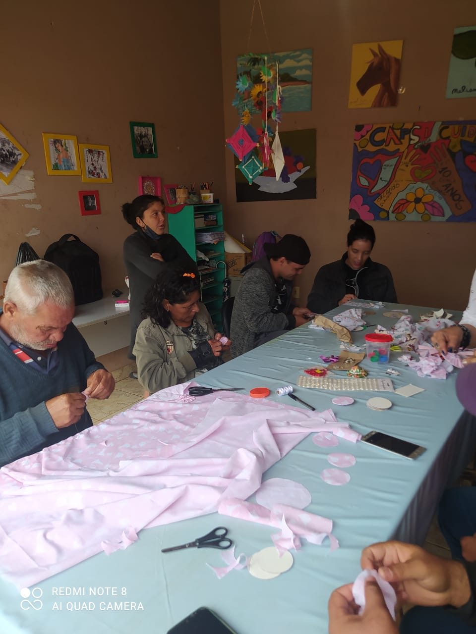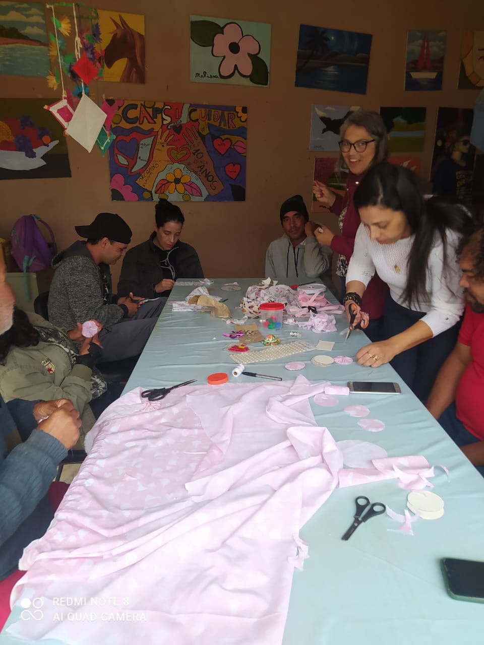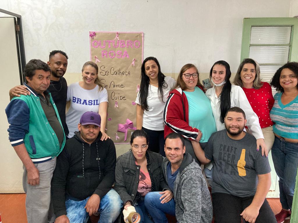 Pacientes do CAPS confeccionam cartazes sobre o Outubro Rosa