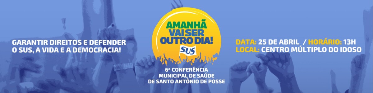 A 6ª Conferência Municipal de Saúde será realizada no dia 25 de abril de 2023 pelo Conselho Municipal de Saúde, juntamente com a Secretaria Municipal de Saúde. O evento, que acontece a cada quatro anos, é um dos mais importantes espaços de diálogo entre governo e sociedade para a construção das políticas públicas do Sistema Único de Saúde (SUS). Com o tema “Garantir Direitos e Defender o SUS, a Vida e a Democracia – Amanhã vai ser outro dia”, a Conferência que é aberta ao público, acontecerá no Centro Multiplo do Idoso com início às 13:00h. Ao final do processo, as deliberações aprovadas na 6ª Conferência Municipal de Saúde devem ser contempladas no próximo ciclo de planejamento do município e servir de subsídio para a elaboração do Plano Municipal de Saúde e Plano Plurianual de 2026- 2029.