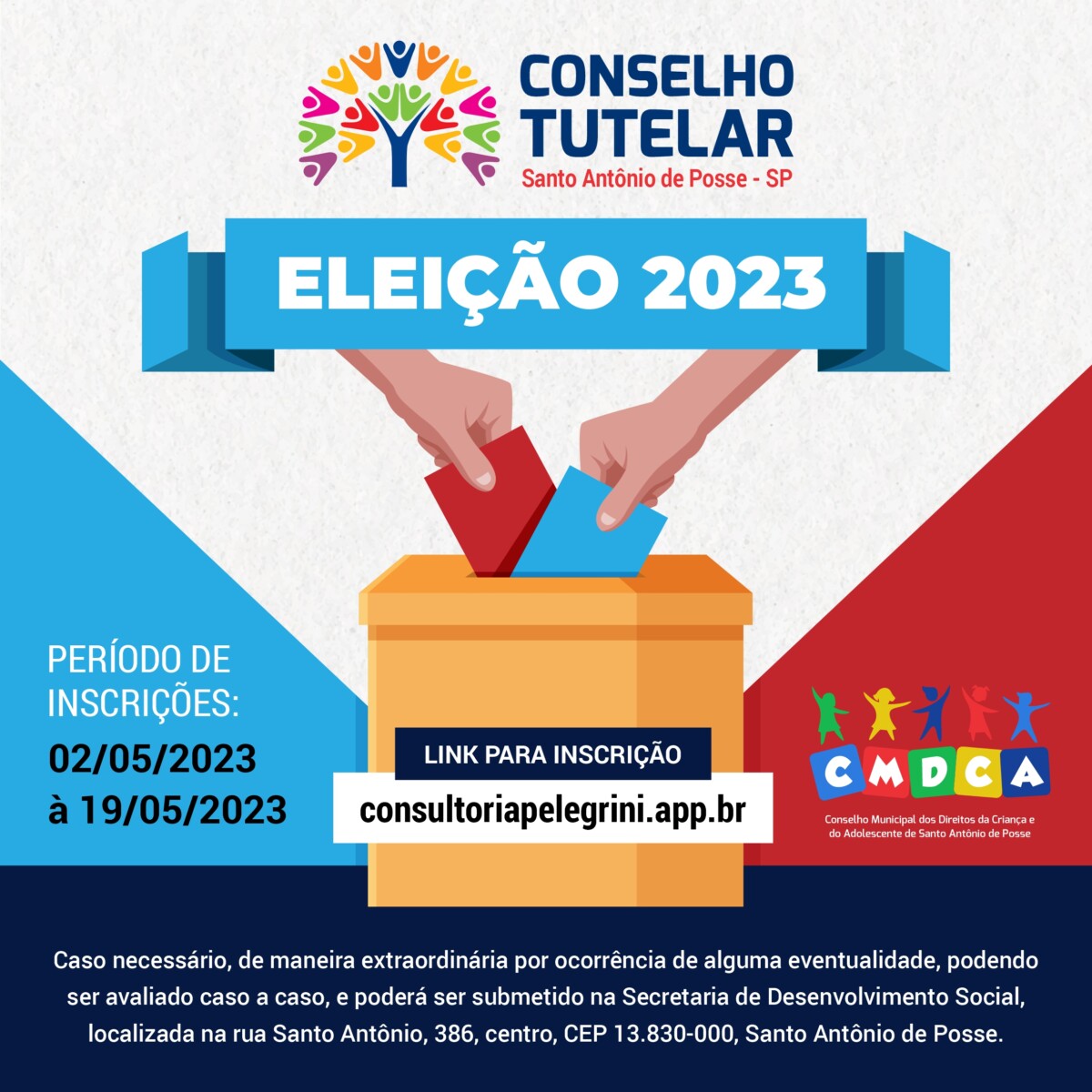 As inscrições para os interessados em integrar o Conselho Tutelar de Santo Antônio de Posse, começam na terça-feira, 2. O prazo para recebimento das candidaturas vai até o dia 2 de junho. Na ocasião, serão escolhidos cinco titulares com mandato válido para o quadriênio 2024/2027. A eleição será realizada no dia 1º de outubro e a posse dos eleitos e seus respectivos suplentes será em 10 de janeiro de 2024.