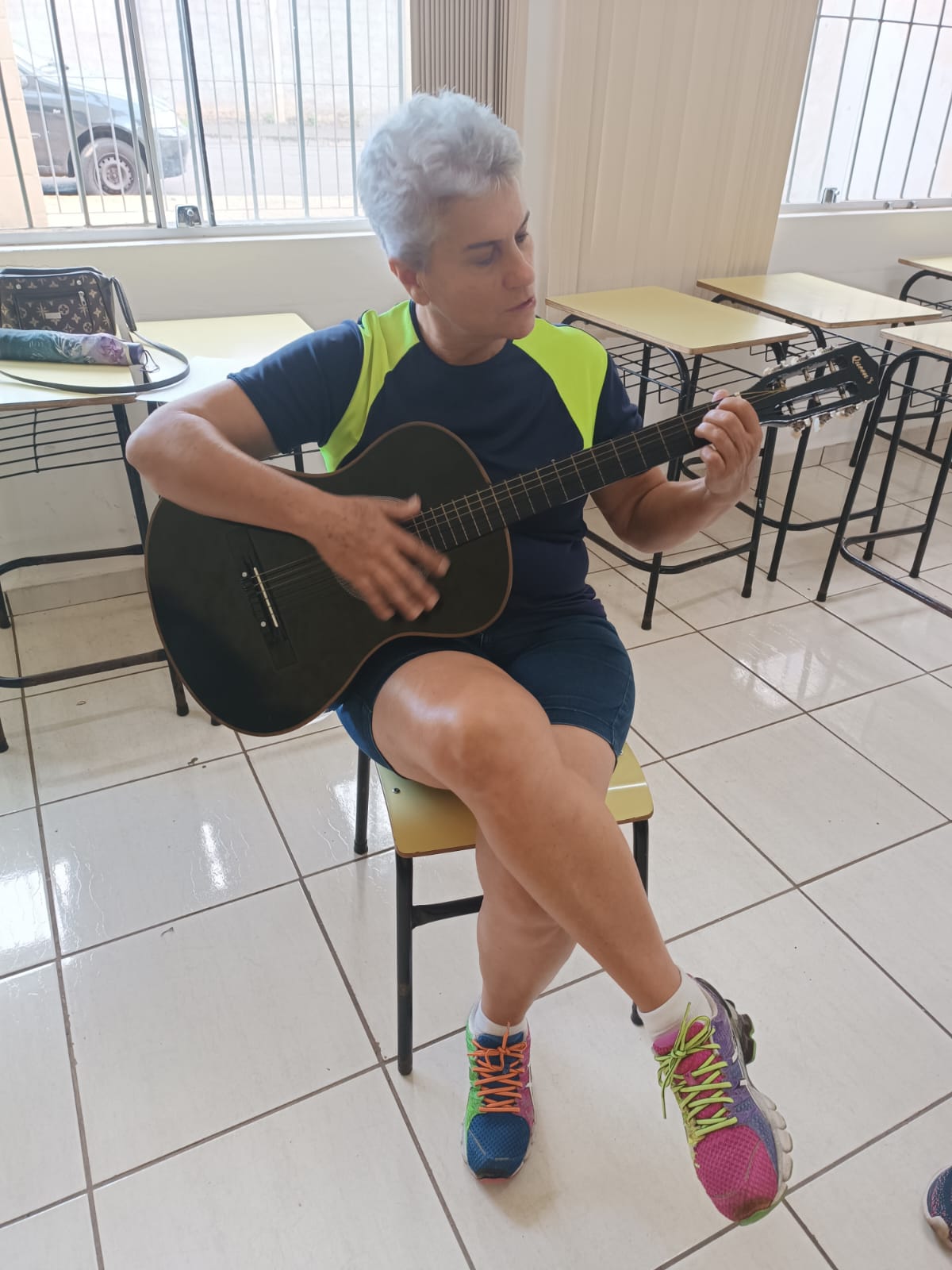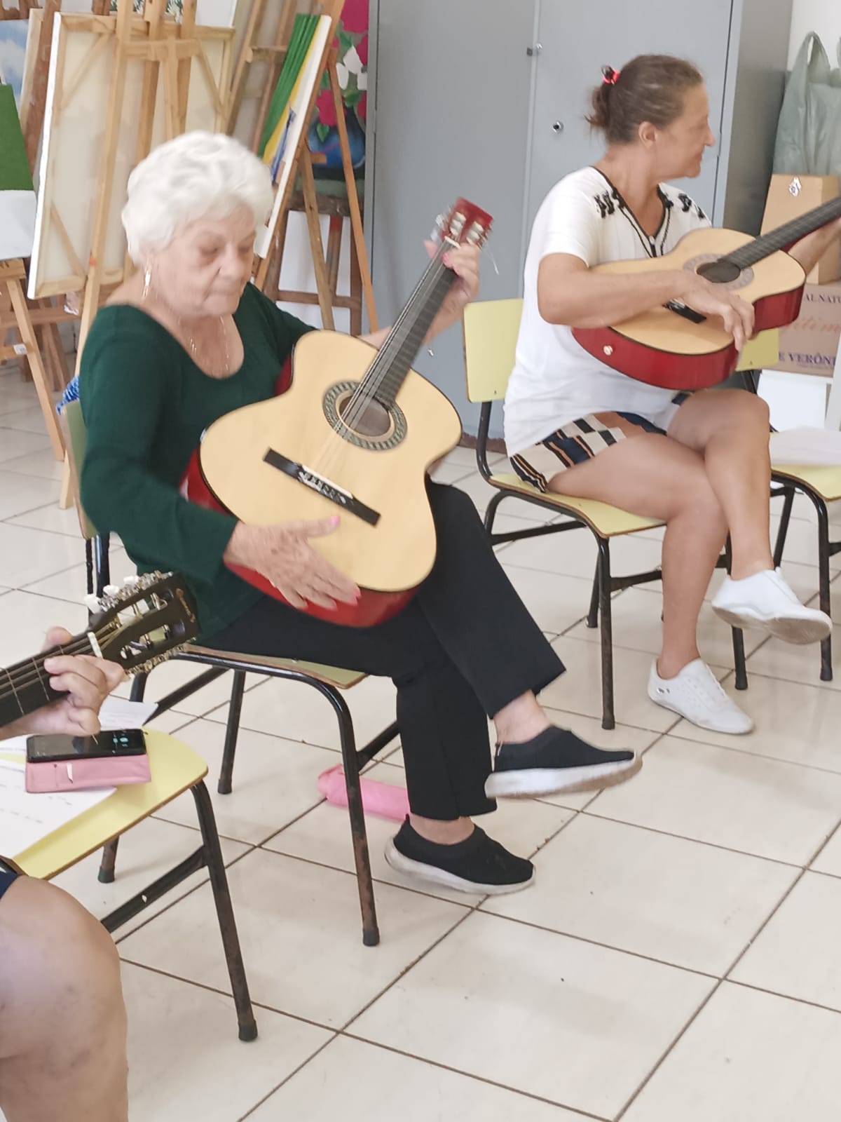 Música para ouvir, para cantar e para tocar. A terceira idade do Grupo Viver Vale a Pena, vinculado ao Fundo Social de Solidariedade, iniciou na última sexta-feira, 28 de abril, a oficina de violão, na qual por meio de aulas teóricas e práticas, os idosos aprendem a tocar vários ritmos musicais. As aulas acontecem as sextas-feiras, das 9h30 às 10h30, Centro Múltiplo do Idoso, com instrução do violeiro, professor e Luthier (fabricante de instrumentos de cordas), Carlos Bicalho.