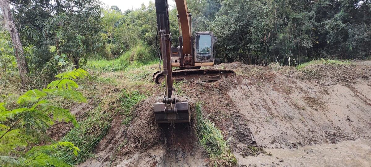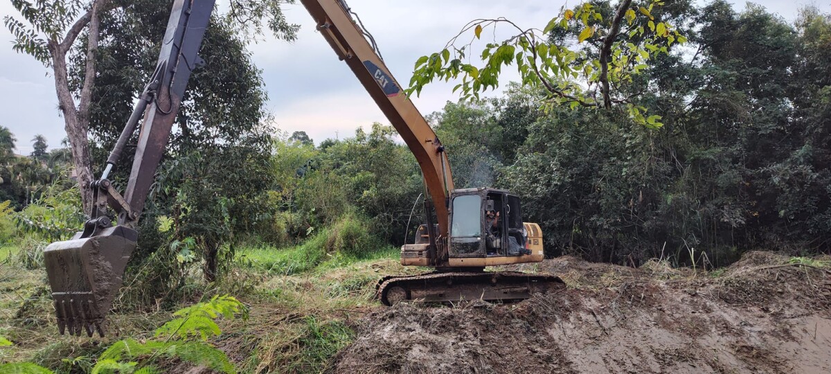Equipe da Secretaria de Serviços Públicos e Meio Ambiente realiza limpeza do córrego do Monte Santo