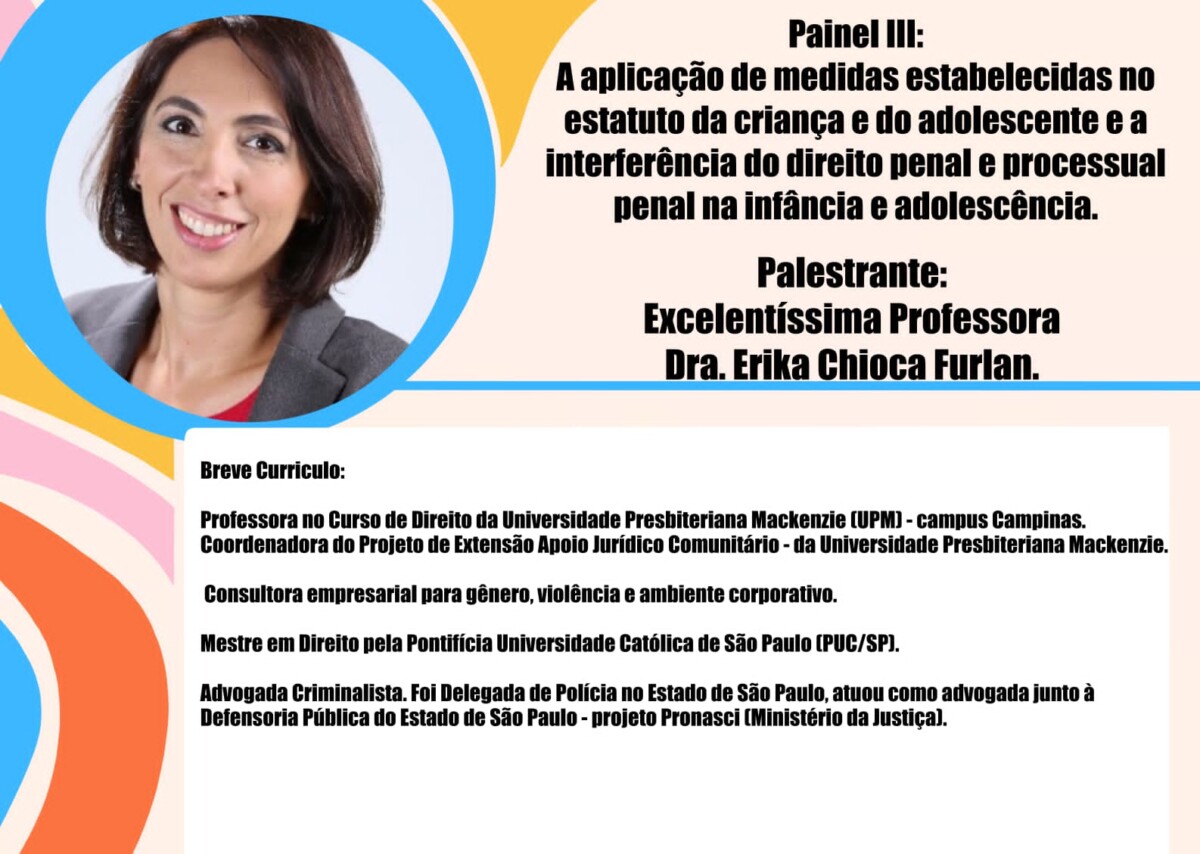 A programação prevê três painéis que vão discutir a história e a evolução do ECA e a execução de medidas socioeducativas. O evento irá ocorrer no plenário da Câmara Municipal, das 10h às 14h.