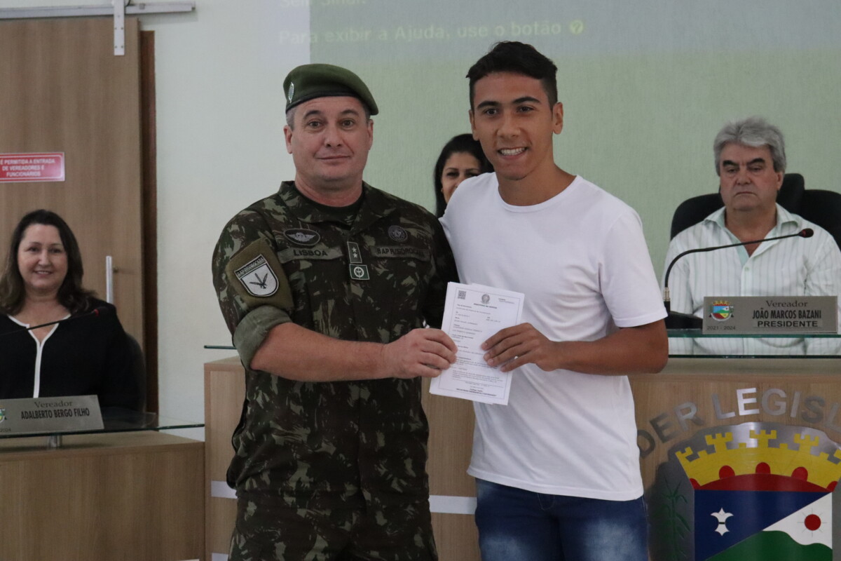 A Junta de Serviço Militar de Santo Antônio de Posse realizou na manhã desta terça-feira, 12 de setembro, no plenário da Câmara Municipal, a solenidade de “Compromisso à Bandeira” e entrega dos Certificados de Dispensa de Incorporação aos possenses que foram dispensados da prestação do Serviço Militar inicial no ano corrente. Cerca de oitenta jovens participaram da atividade prevista no Regulamento da Lei do Serviço Militar em seus artigos 107 e 217, sendo importante momento de transição para a vida adulta, de fortalecimento do espírito cívico e da cidadania.