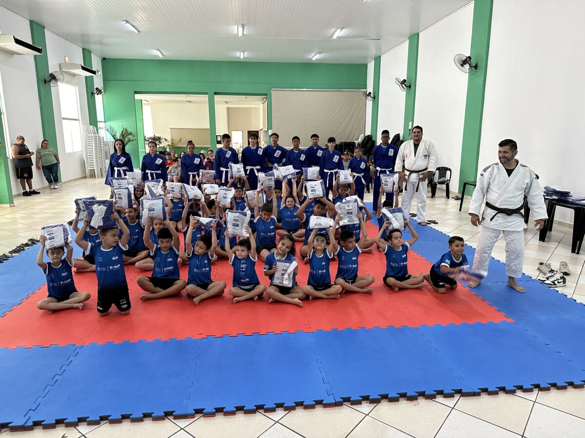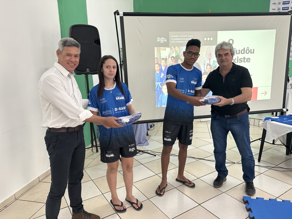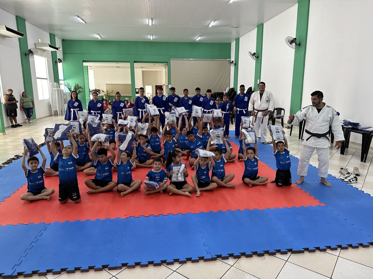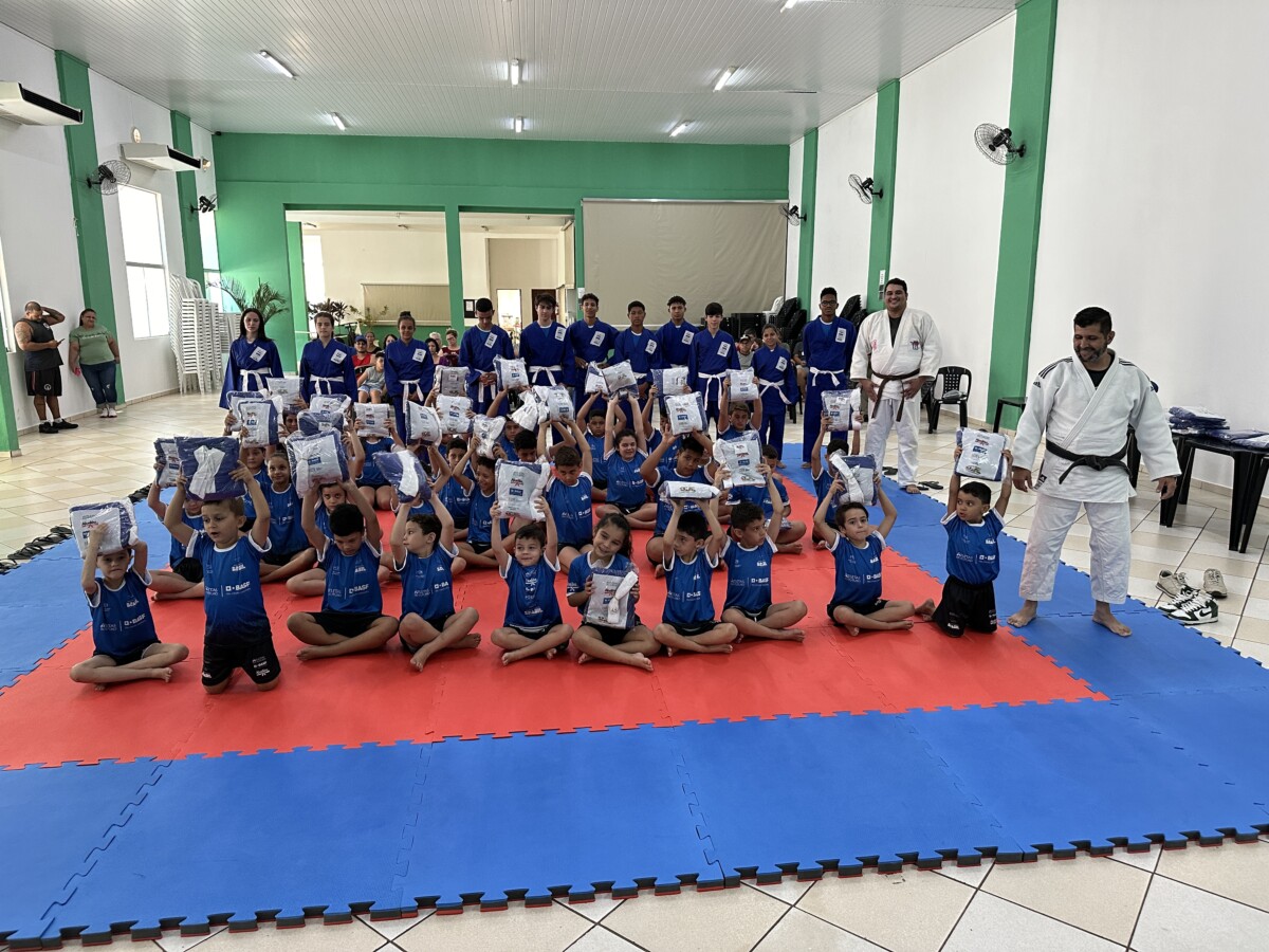 Na última segunda-feira, 23 de outubro, aconteceu no Centro Múltiplo do Idoso, a cerimônia de entrega dos uniformes para 75 jovens que participam do Projeto Atleta do Futuro, realizado pelo Ajudôu, com o patrocínio da BASF, via Lei Federal de Incentivo ao Esporte e apoio da Prefeitura Municipal, concedendo a oportunidade para crianças e jovens do município praticarem esportes de forma totalmente gratuita.