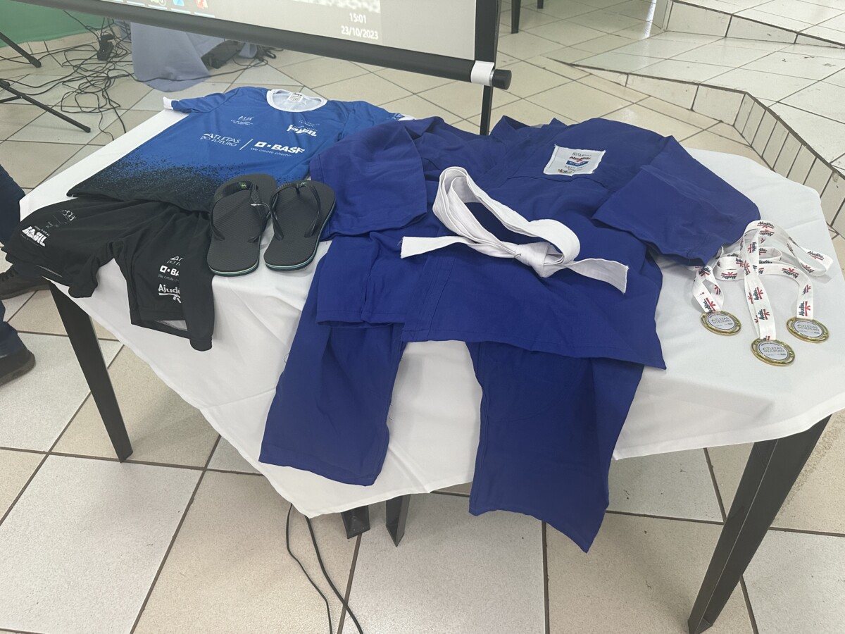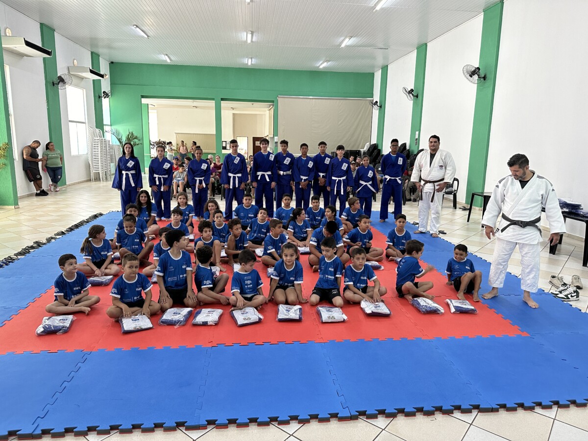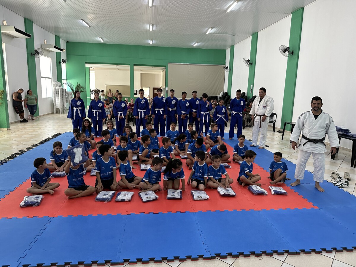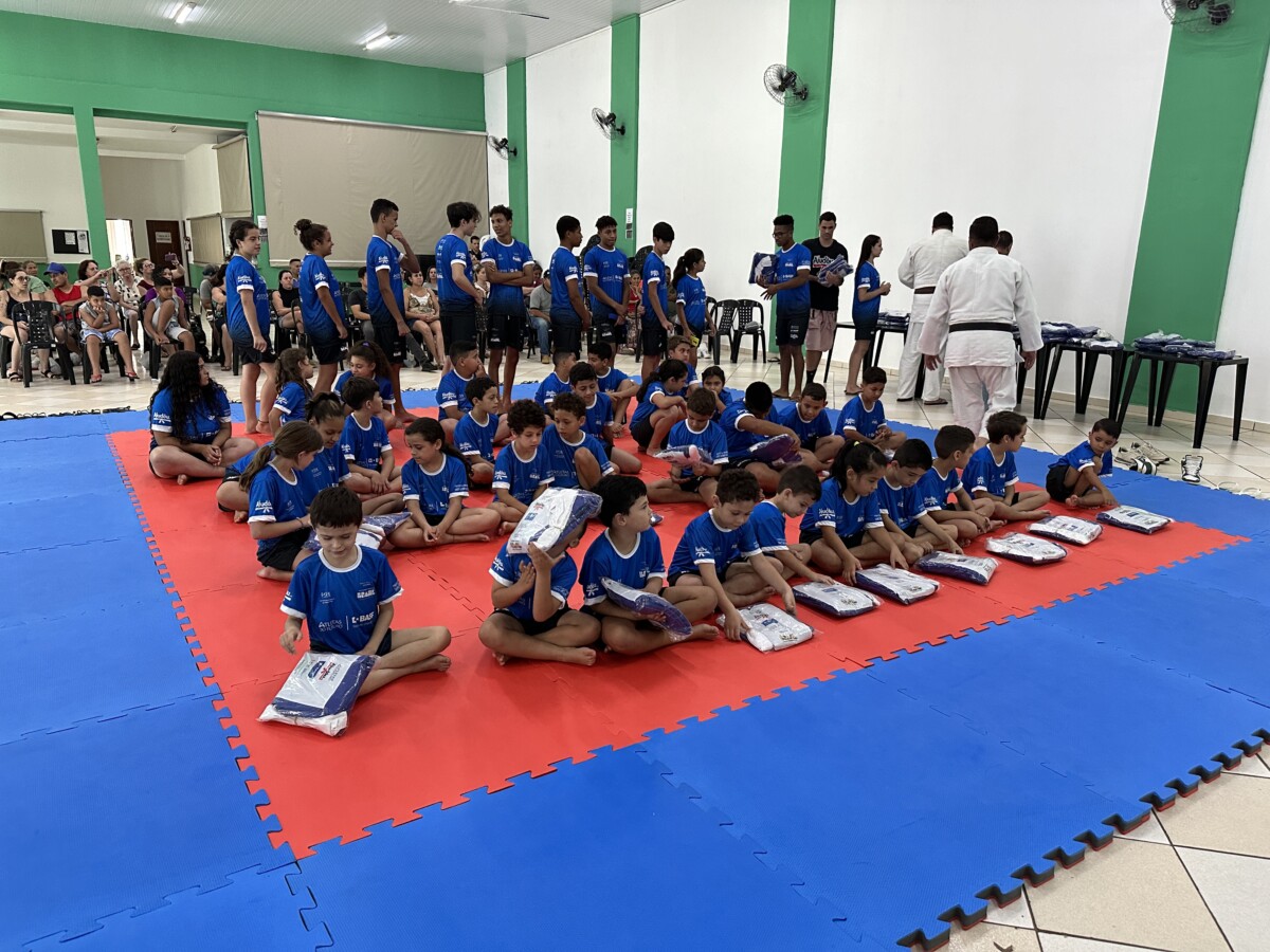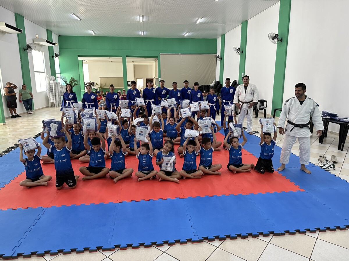 Na última segunda-feira, 23 de outubro, aconteceu no Centro Múltiplo do Idoso, a cerimônia de entrega dos uniformes para 75 jovens que participam do Projeto Atleta do Futuro, realizado pelo Ajudôu, com o patrocínio da BASF, via Lei Federal de Incentivo ao Esporte e apoio da Prefeitura Municipal, concedendo a oportunidade para crianças e jovens do município praticarem esportes de forma totalmente gratuita.