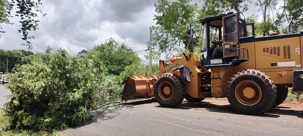 Desde a tarde desta sexta-feira, 3 de novembro, equipes da Secretaria de Serviços Públicos e Meio Ambiente estão atuando em diversos pontos da cidade para limpeza e desobstrução das áreas afetadas pela forte chuva que atingiu o município. Os profissionais seguem trabalhando na limpeza e normalização do tráfego, realizando o corte de árvores e a remoção de galhos e entulhos.