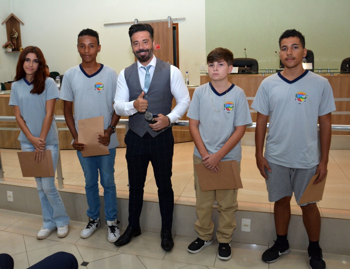 Aconteceu na noite da última segunda-feira, 18 de dezembro, no plenário da Câmara Municipal, a cerimônia de premiação dos alunos da rede pública de ensino autores das melhores redações sobre o tema: “Como o mundo seria melhor sem as drogas”. A iniciativa foi uma realização da Secretaria Municipal de Segurança Pública, em parceria com a Secretaria da Educação e apadrinhada pelo Juiz de Direito da 1ª Vara Cível do Foro da Comarca de Jaguariúna, Dr. Marcelo Forli Fortuna, responsável não apenas por escolher as melhores redações, mas principalmente por incentivar que esta temática das drogas pudesse ser trabalhada e debatida nas salas de aula e dentro das famílias com o intuito de ampliar a conscientização sobre os riscos e malefícios dos entorpecentes junto aos jovens.