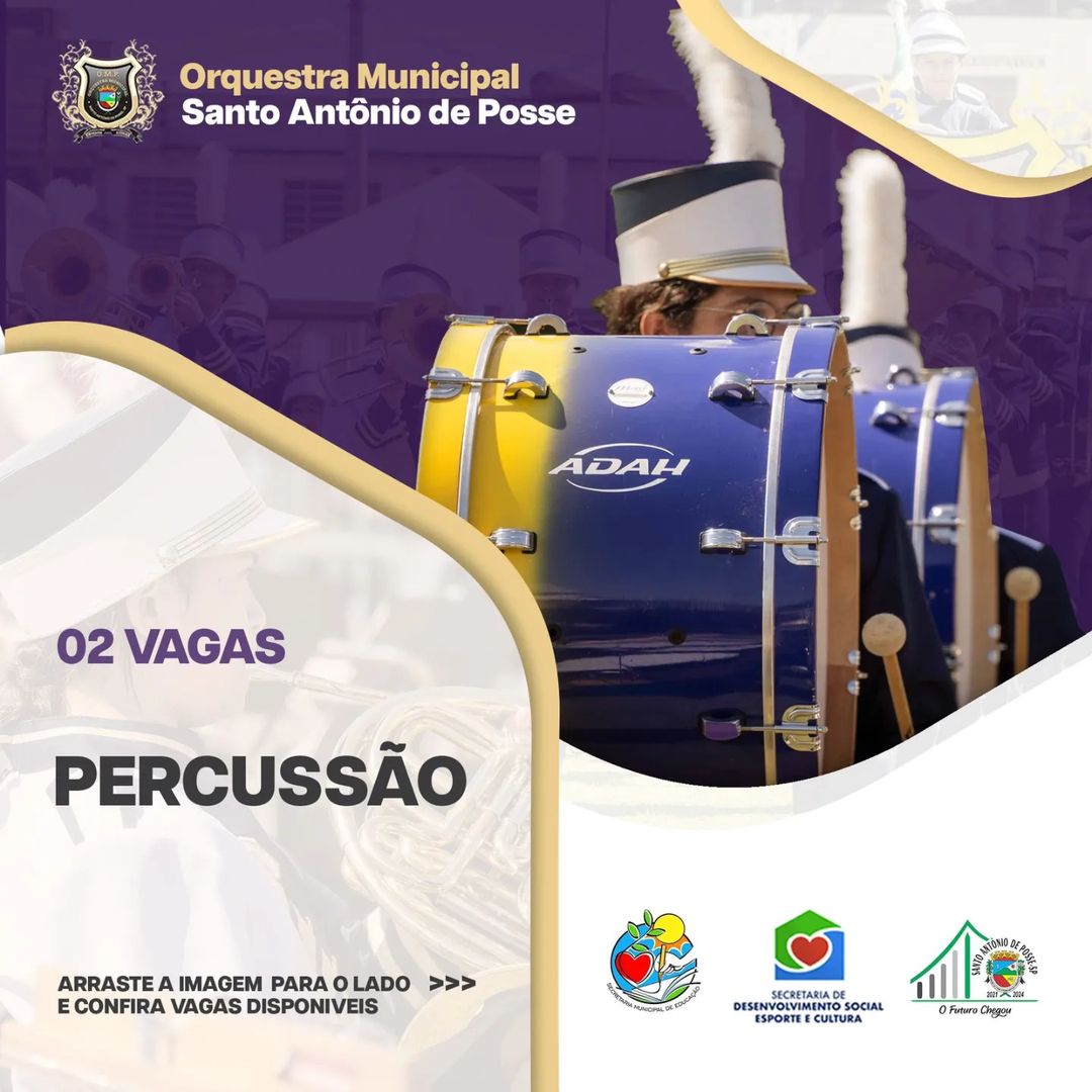Venha participar da Orquestra Municipal de Metais e Percussão. As aulas são gratuitas, não sendo necessário possuir instrumentos musicais. Podem participar crianças a partir de 9 anos. Para se inscrever, os interessados devem procurar a EMEF Pref. Augusto Coelho (entrada pela quadra de esportes), de segunda a sexta-feira, das 18h às 19h30, ou pelo WhatsApp, por meio do número (19) 99766-4340
