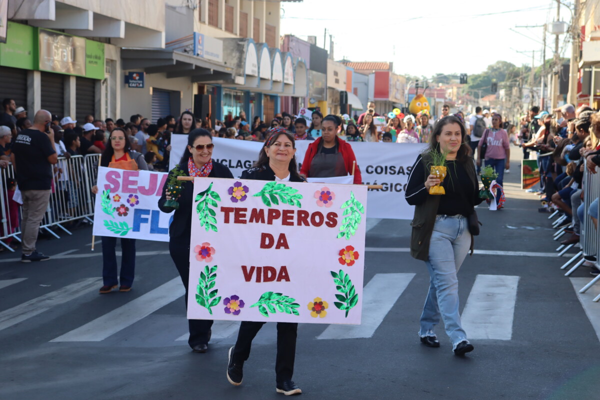 Com o tema "Florescendo, cultivando e reciclando", o desfile foi uma celebração emocionante da história, cultura e identidade dessa comunidade querida, ressaltando a importância de cuidar do meio ambiente e preservar nossos recursos naturais para garantir o equilíbrio e a vida do planeta Terra.