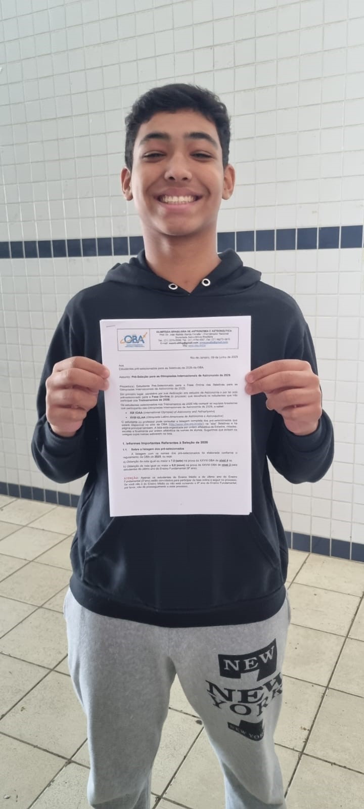 Os estudantes também se destacaram na Olimpíada Brasileira de Astronomia e Aeronáutica (OBA), conquistando duas medalhas de prata, resultado expressivo em uma competição tradicional e com ampla participação em todo o país.