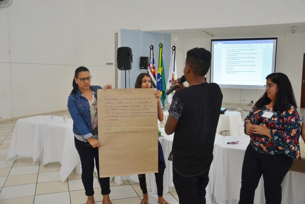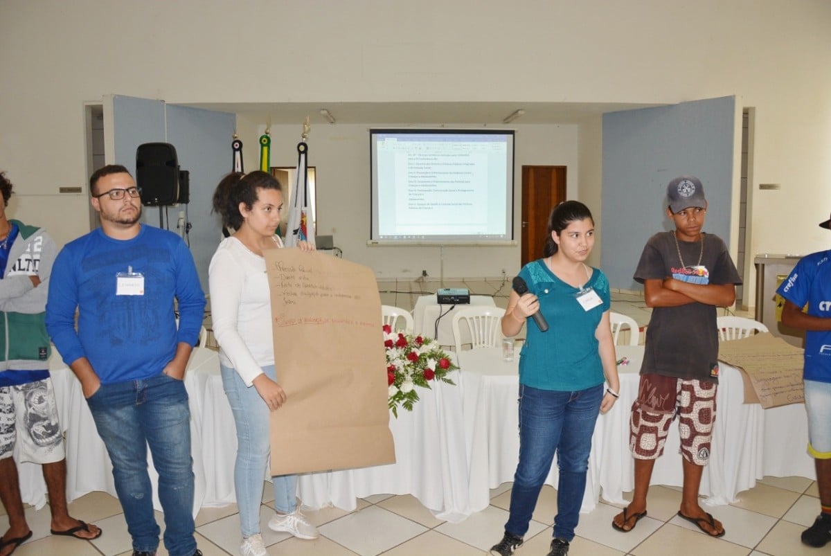 Após as discussões em grupo foram apresentadas as propostas por eixo e escolhidos os delegados que participarão da Conferência Estadual, sendo 1 adolescente, 1 representante do poder público e 1 representante da sociedade civil.