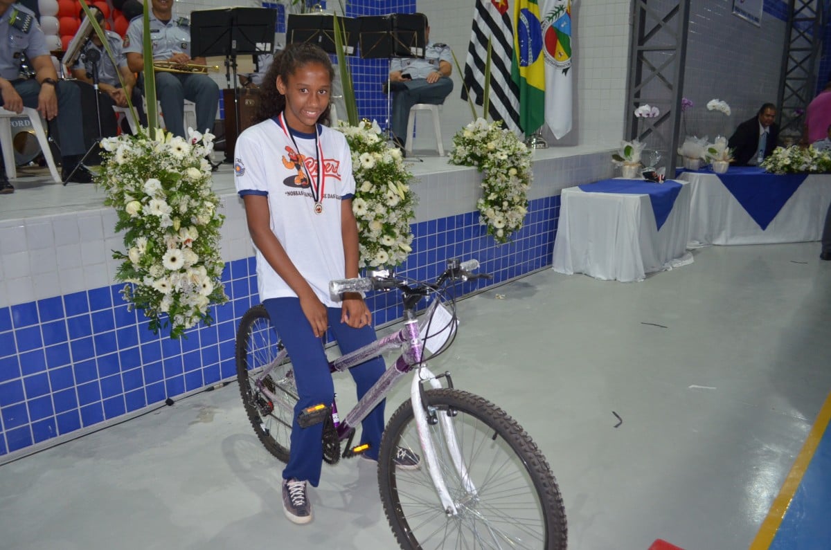 Na cerimônia, foram premiados os alunos destaques de cada sala e também a melhor redação, que premiou com uma bicicleta a estudante Ana Clara Ferraz, DO 5º B da EMEF Profª Conceição Godoi Menuzzo.