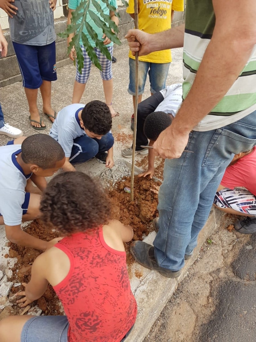 E, em parceria com o Departamento de Meio Ambiente, foi realizada a revitalização das calçadas do CIEF, através da ação de plantio de árvores durante toda a extensão do passeio.