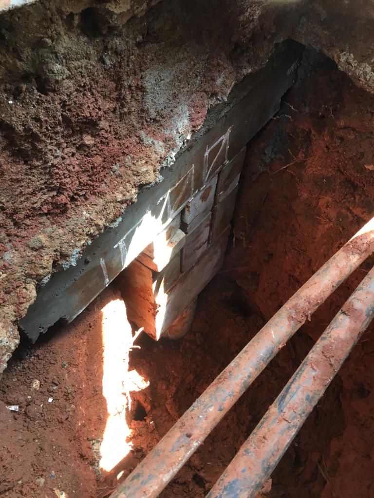 Incialmente, os serviços estão sendo feitos pelo corredor de serviços, junto à alvenaria externa dos fundos, buscando estabilização do prédio sem que haja interferência interna, prejudicando a prestação dos serviços.