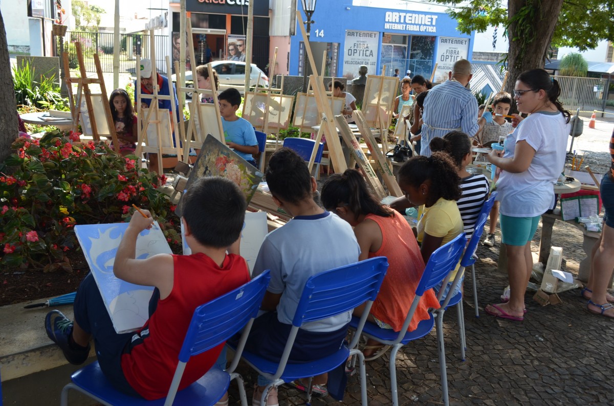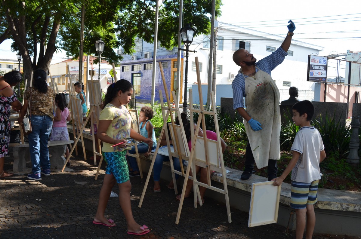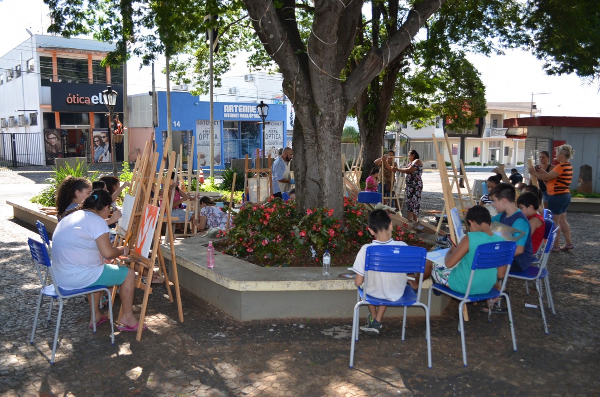 A Praça da Matriz foi palco para uma aula diferenciada nesta terça-feira, dia 26 de março. Os alunos do 4º ao 5º ano da EMEF Mario Bianchi participaram de uma aula de artes, ministrada pelo artista e professor Ever San Laurenzo, ao ar livre e puderam aprender e praticar a pintura em tela. As aulas acontecem todas as terças-feiras e as inscrições devem ser feitas na própria escola.