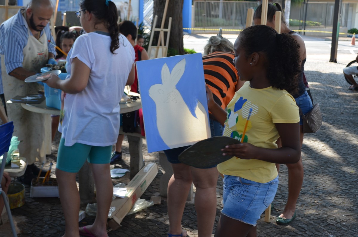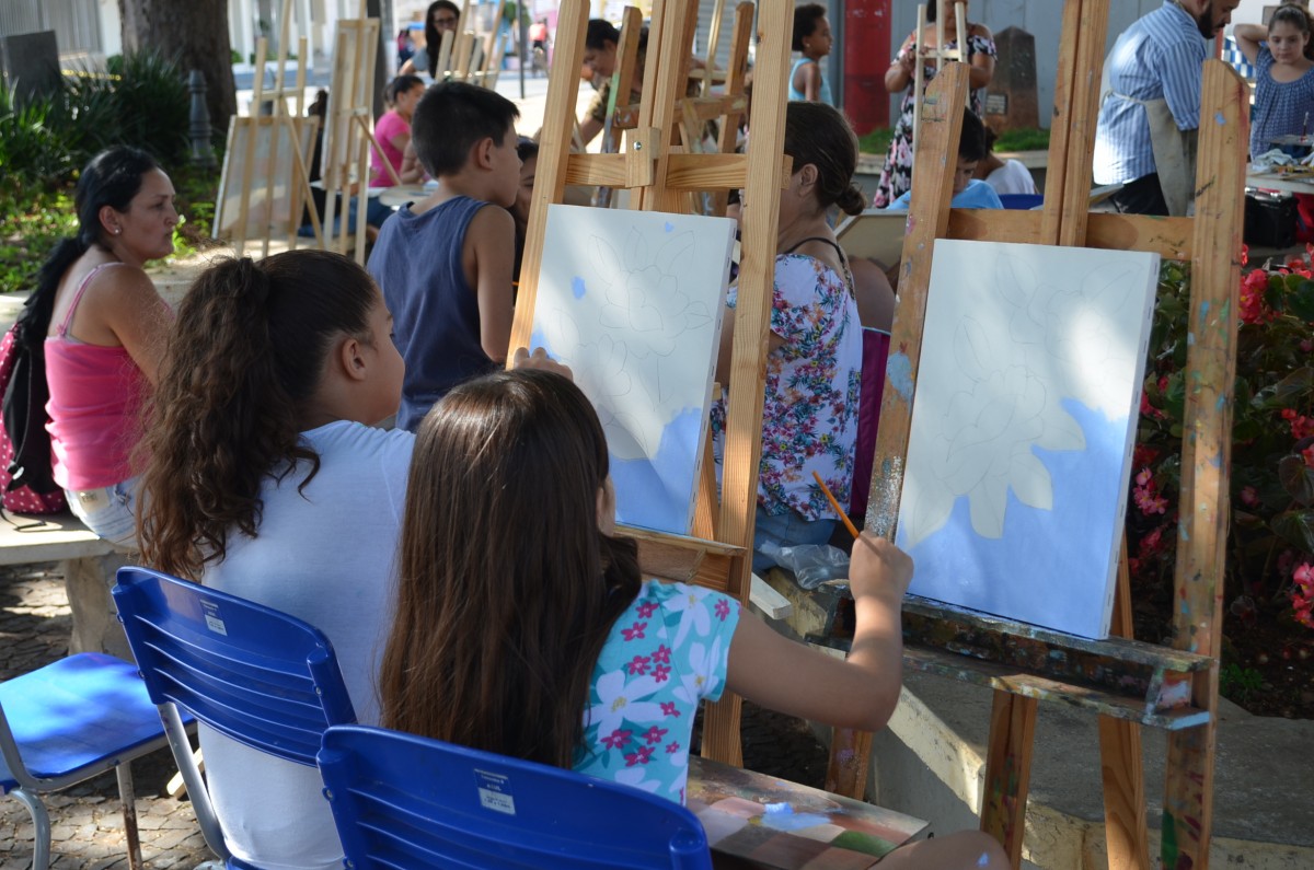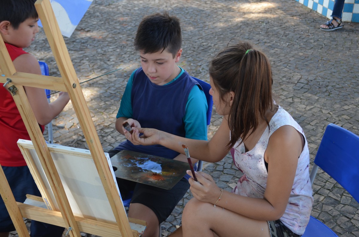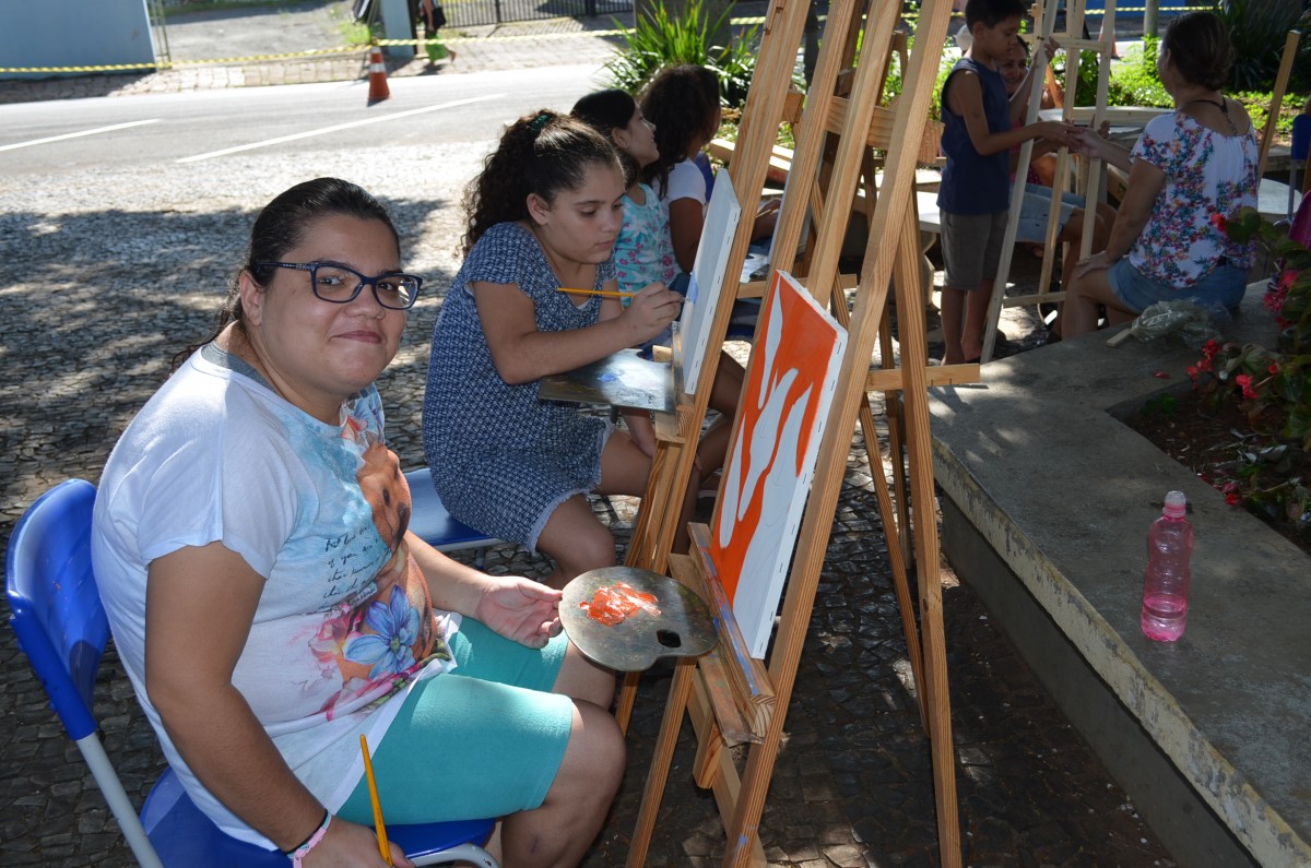A Praça da Matriz foi palco para uma aula diferenciada nesta terça-feira, dia 26 de março. Os alunos do 4º ao 5º ano da EMEF Mario Bianchi participaram de uma aula de artes, ministrada pelo artista e professor Ever San Laurenzo, ao ar livre e puderam aprender e praticar a pintura em tela. As aulas acontecem todas as terças-feiras e as inscrições devem ser feitas na própria escola.