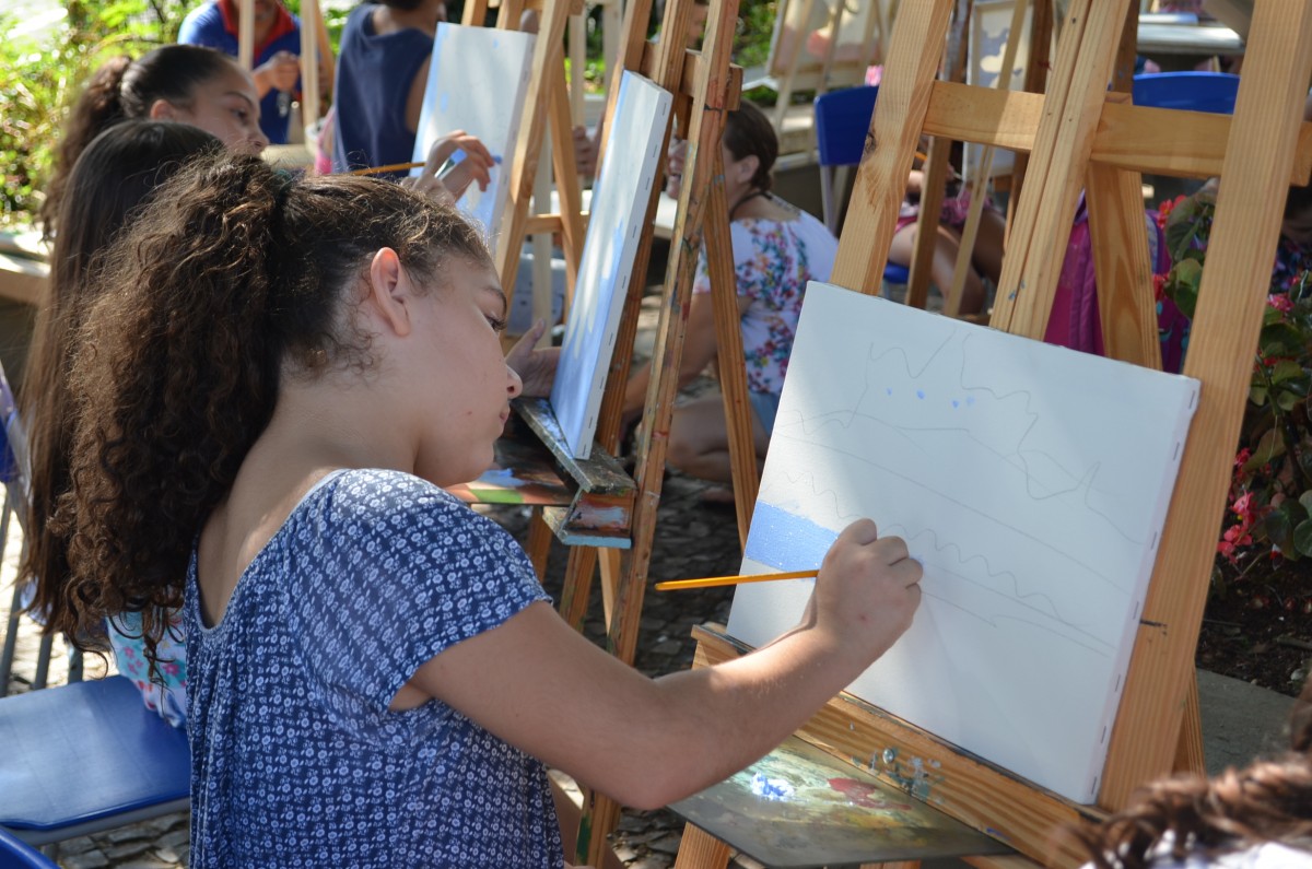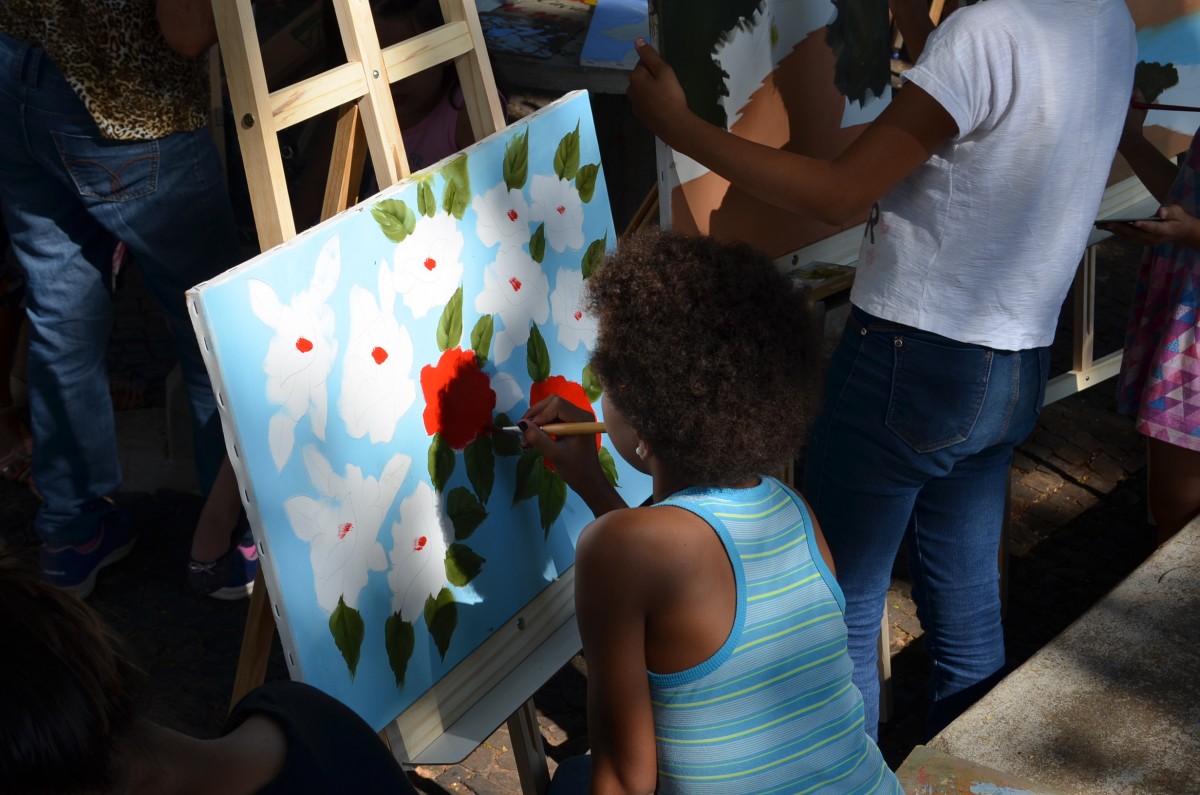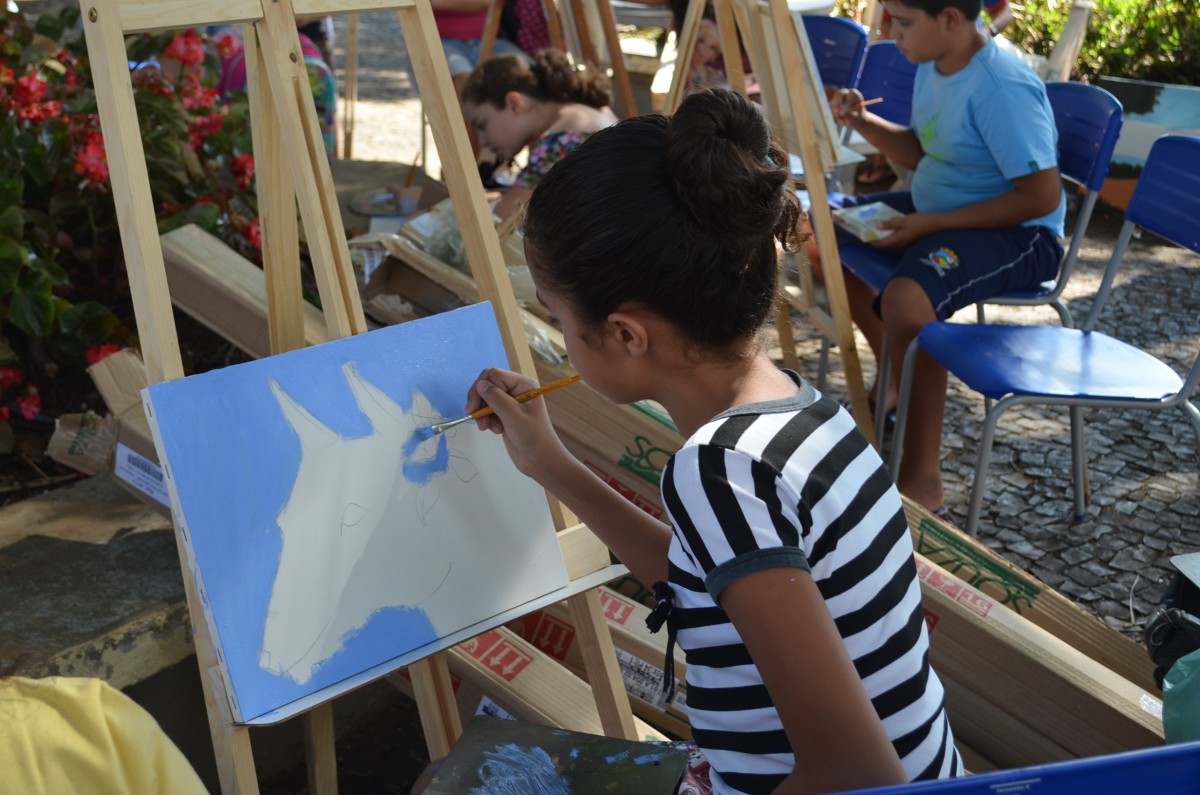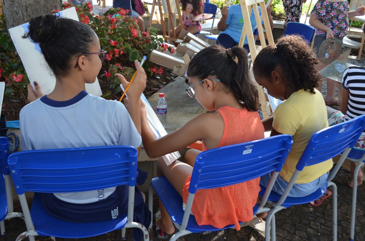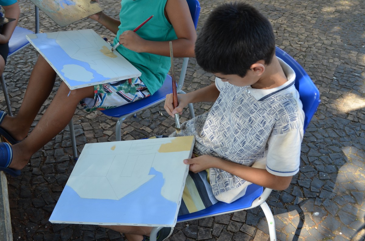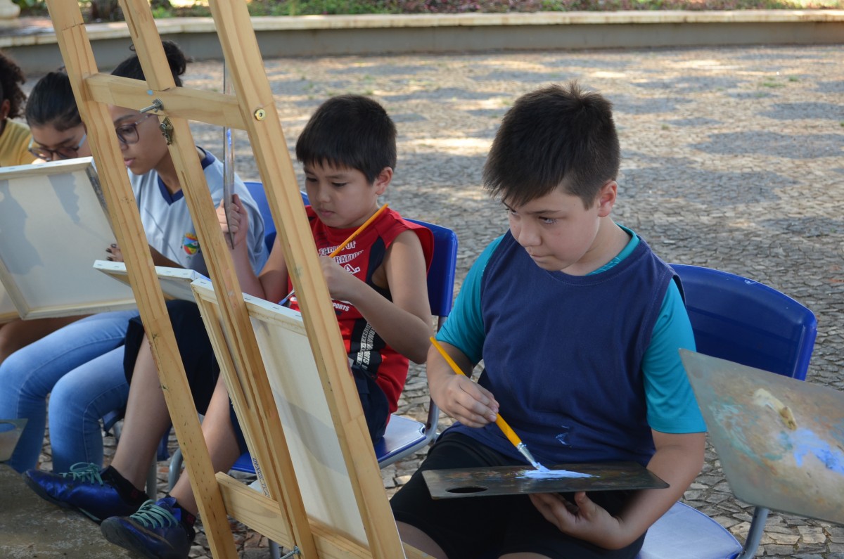 Alunos da rede municipal tem aula de pintura ao ar livre