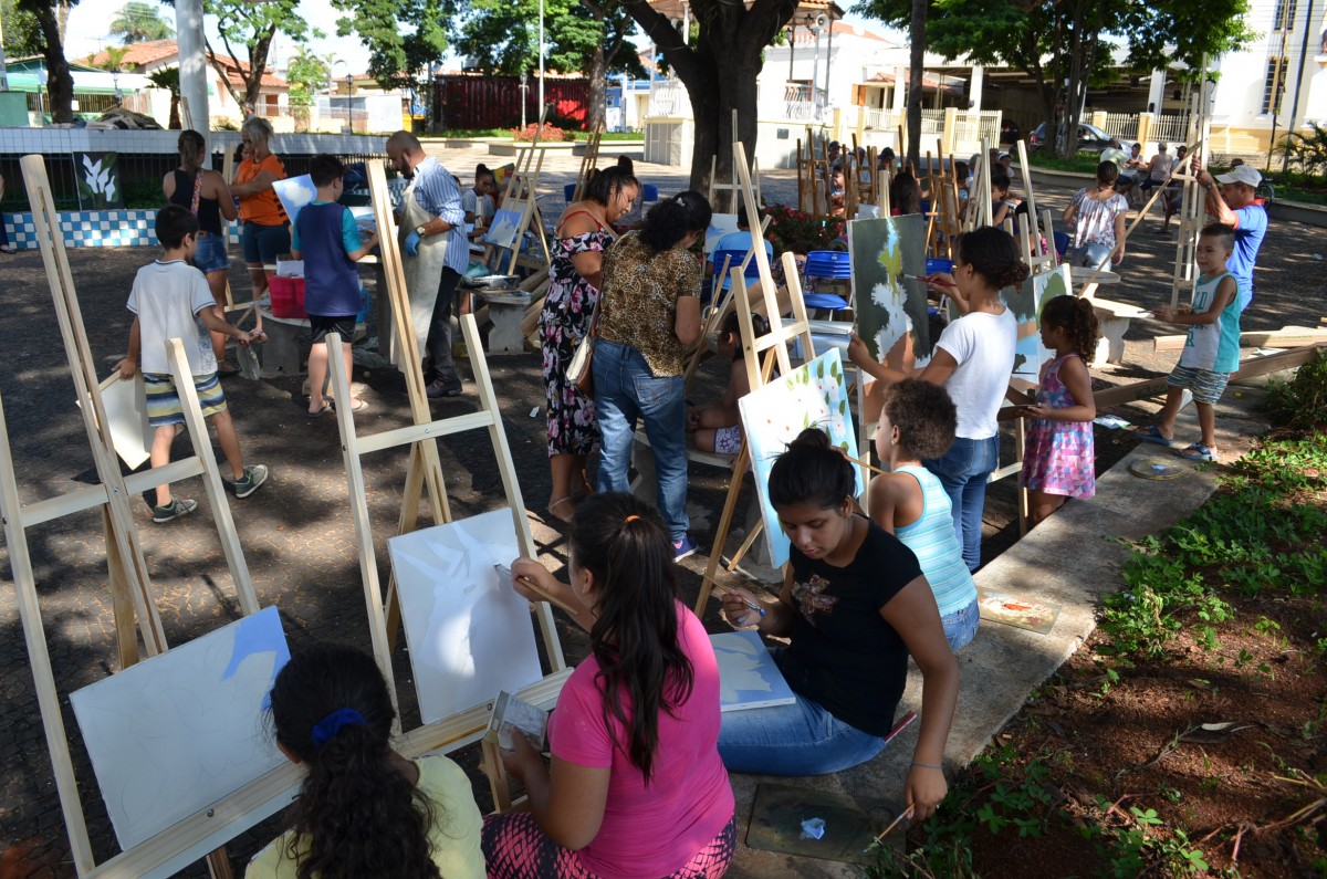Cerca de 25 alunos estavam presentes na atividade que também contou com a participação de mães e pais que se dispuseram a ajudar na montagem dos cavaletes para apoio das telas. A atividade foi promovida pela Secretaria de Educação.