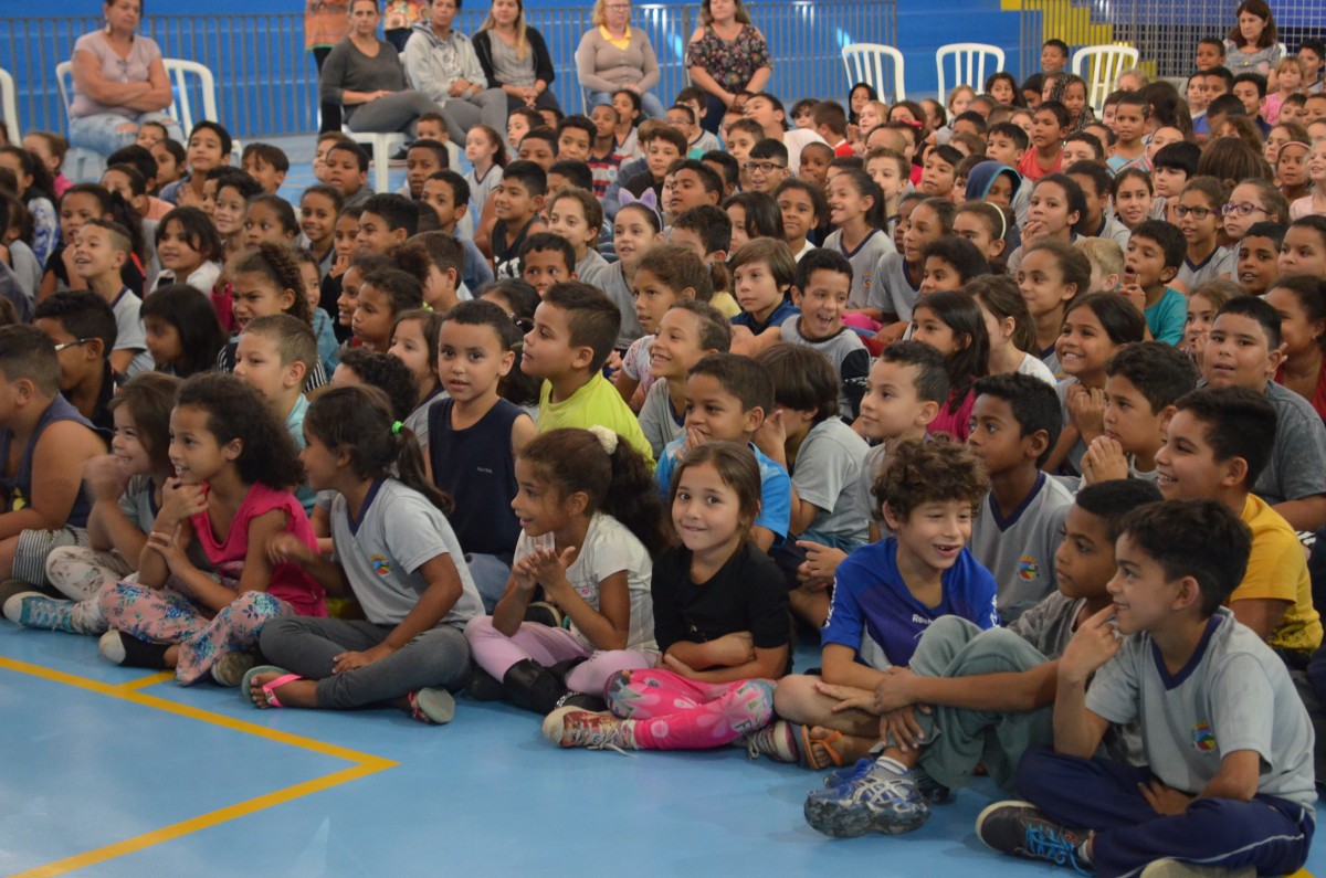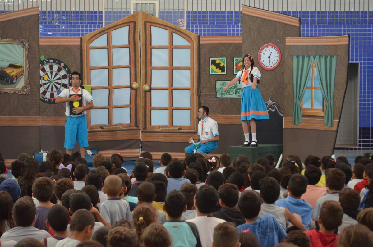 Nesta quinta-feira, dia 23 de maio, os alunos da rede municipal de ensino tiveram a oportunidade de acompanhar mais um espetáculo da Companhia de Teatro Parafernália. Desta vez, através da peça “Ir e Vir Sem Colidir”, o trabalhou-se como tema as leis de trânsito e a importância de conhecê-las e respeitá-las. Cerca de 150 alunos estavam presentes na ocasião. Confira as fotos!