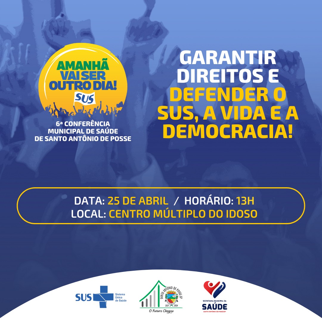 A 6ª Conferência Municipal de Saúde será realizada no dia 25 de abril de 2023 pelo Conselho Municipal de Saúde, juntamente com a Secretaria Municipal de Saúde. O evento, que acontece a cada quatro anos, é um dos mais importantes espaços de di...
